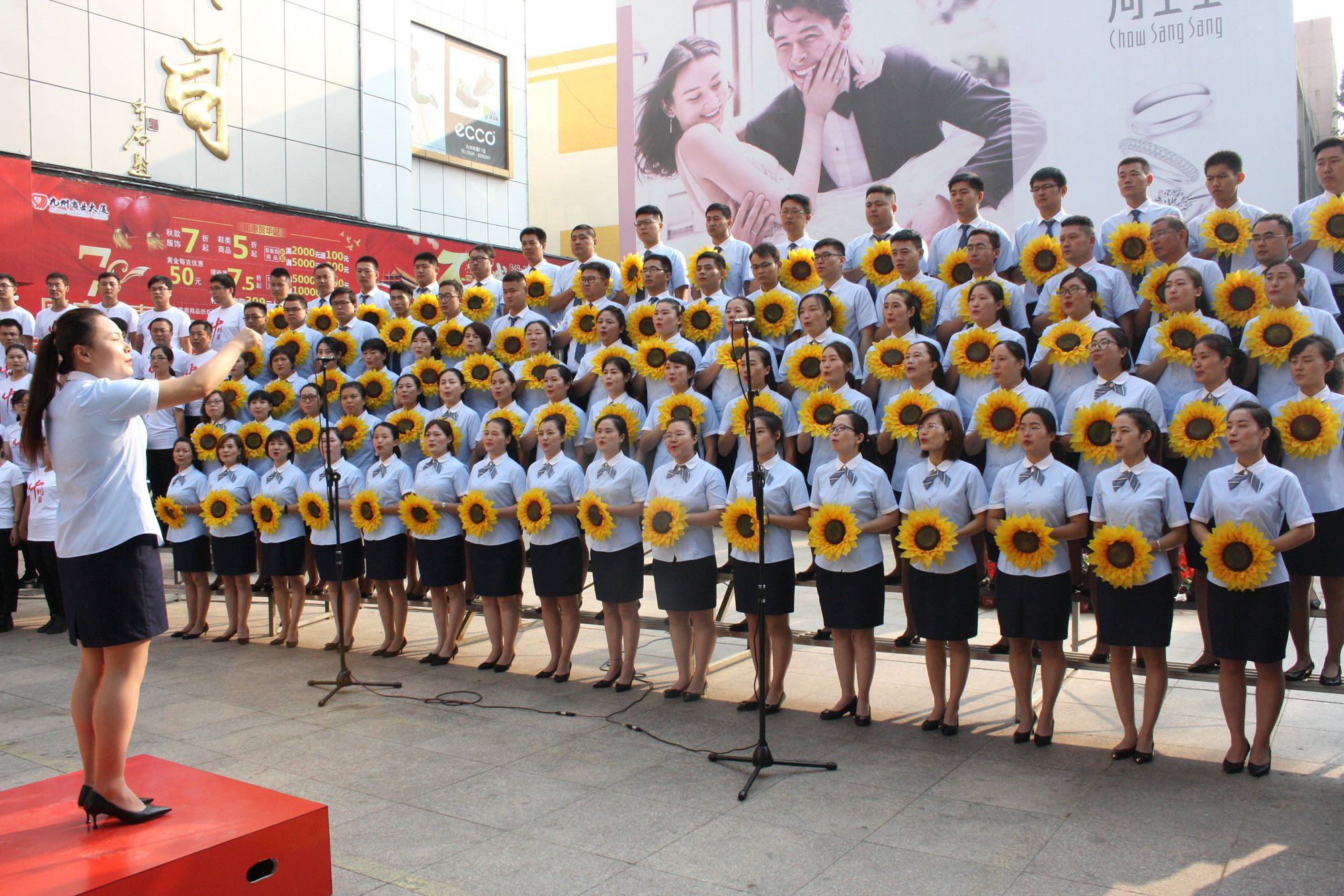 躬逢新時代,頌歌獻(xiàn)祖國。9月30日早上,集團(tuán)在九州商業(yè)大廈門前廣場舉辦慶祝新中國成立70周年歌詠比賽,來自各經(jīng)營單位和集團(tuán)行政處室的六支代表隊共計450余人參加了比賽。 余音繞梁,群情激昂,或雄壯,或深情,或火熱,或沉醉,六支代表隊用動聽的歌聲直抒對祖國的滿腔熱愛,展現(xiàn)新時代九州人深厚的愛國情懷。“起來,不愿做奴隸的人們,把我們的血肉筑成我們新的長城……”比賽伊始,舉行升國旗儀式,伴隨著緩緩升起的五星紅旗,六支代表隊齊唱國歌,斗志昂揚。隨后,全體大合唱《九州集團(tuán)之歌》更加彰顯了九州員工蓬勃向上、意氣風(fēng)發(fā)的精神風(fēng)貌。本次比賽,每支代表隊演唱兩首參賽曲目,以歌詠志、以歌抒懷。《祖國頌》《我和我的祖國》《保衛(wèi)黃河》《大中國》《沒有共產(chǎn)黨就沒有新中國》《歌唱祖國》《不忘初心》《我愛你中國》《祖國不會忘記》《愛我中華》等一首首膾炙人口的歌曲陸續(xù)唱響,唱出了九州人對祖國母親的無限熱愛和美好祝福。嘹亮的歌聲在現(xiàn)場久久回蕩,吸引了越來越多的行人駐足觀看,現(xiàn)場響起一陣又一陣的掌聲。比賽的最后,所有參賽隊員及現(xiàn)場觀眾在指揮老師的統(tǒng)一指揮下,共同唱響《歌唱祖國》,“五星紅旗迎風(fēng)飄揚,勝利歌聲多么嘹亮,歌唱我們親愛的祖國,從今走向繁榮富強……”熟悉的旋律伴隨著飄揚的五星紅旗,將現(xiàn)場的氣氛推向高潮,本次比賽圓滿落下帷幕。 同唱愛國歌,共筑九州夢。當(dāng)下,九州人將青春與熱血融入旋律,將情懷與夢想融入歌聲,獻(xiàn)禮祖國。而今后,九州人將繼續(xù)緊隨偉大祖國發(fā)展步伐,不忘初心,砥礪奮進(jìn),再創(chuàng)事業(yè)新輝煌。(文/劉文靜)