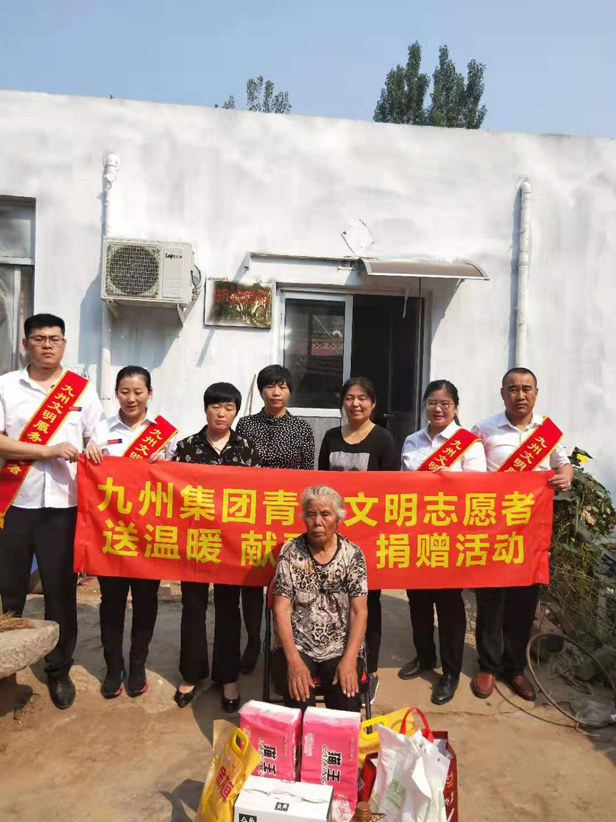 9月29日上午, 在臨沂市河?xùn)|區(qū)紅十字會工作人員的陪同下,超市公司副總經(jīng)理鄭麗帶領(lǐng)青年志愿者們走進(jìn)河?xùn)|區(qū)湯頭鎮(zhèn)福利莊,開展“送溫暖,獻(xiàn)愛心”社會公益活動,為部分貧困戶捐贈了花生油、大米、面粉等生活用品。 每到一戶,志愿者們都詳細(xì)詢問他們的身體、生活、家庭收入情況,以及當(dāng)前遇到的困難和生活上的需求等,鼓勵他們樹立信心、克服困難。對九州給予的關(guān)懷與溫暖,老人們感激之情溢于言表。今后,全體九州人將積極承擔(dān)社會責(zé)任,以實際行動扶貧濟(jì)困,用真情溫暖他人。 (文圖/王林娜)