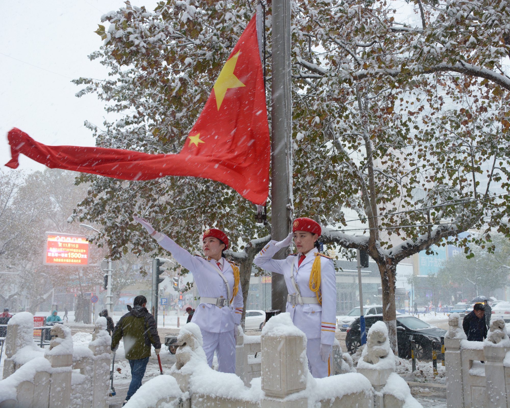 一等獎《雪中升旗儀式》 攝影:田鋒(九州商業(yè)大廈)