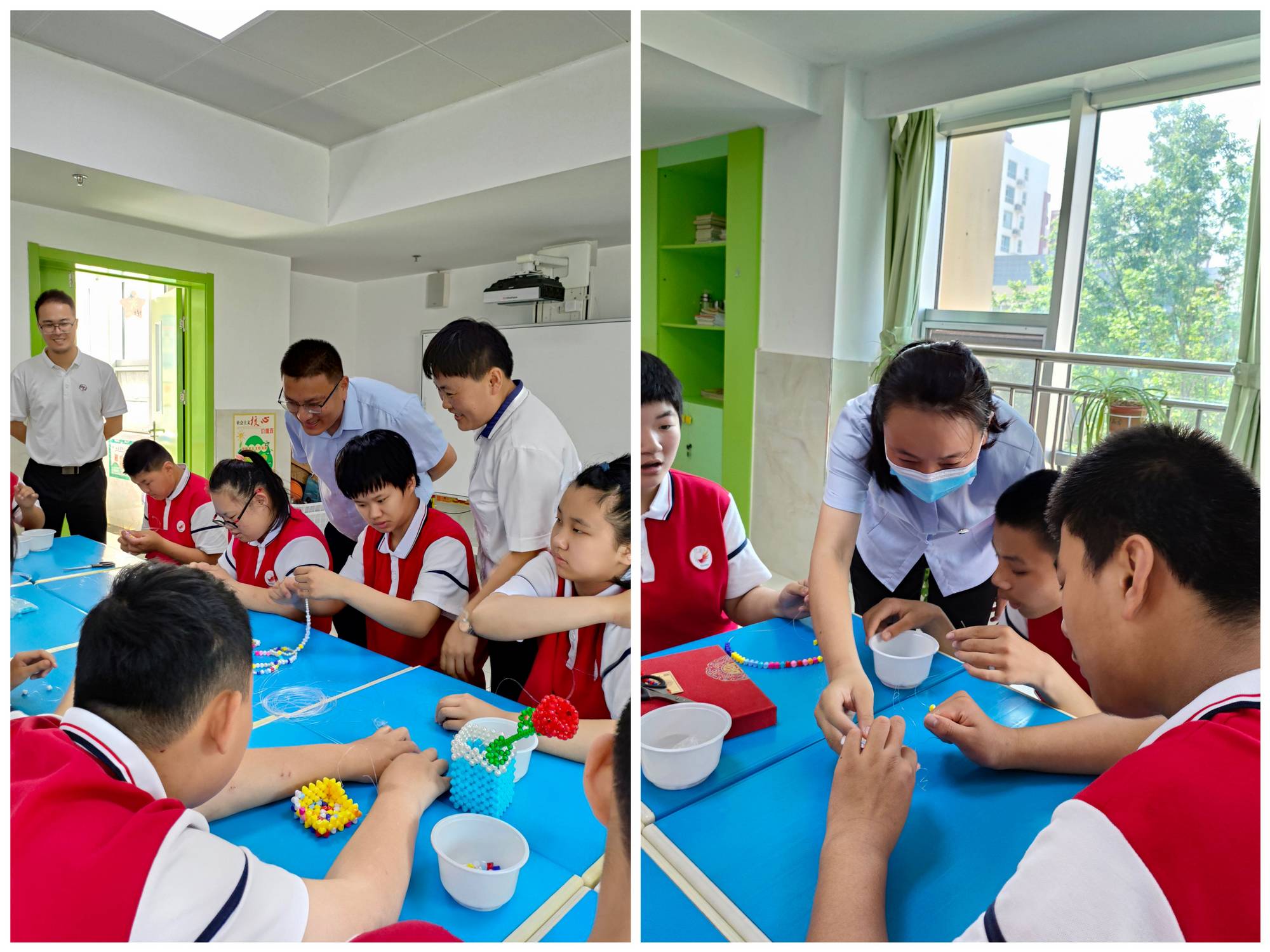 在天使國(guó)際特教學(xué)校執(zhí)行校長(zhǎng)王麗華的帶領(lǐng)下,張峰一行參觀(guān)了學(xué)校兒童康復(fù)區(qū)及相關(guān)功能訓(xùn)練區(qū),詳細(xì)了解了孩子們的康復(fù)情況,與孩子們進(jìn)行手工制作互動(dòng),并為孩子們送去了牛奶、餅干、書(shū)包、籃球等物品。