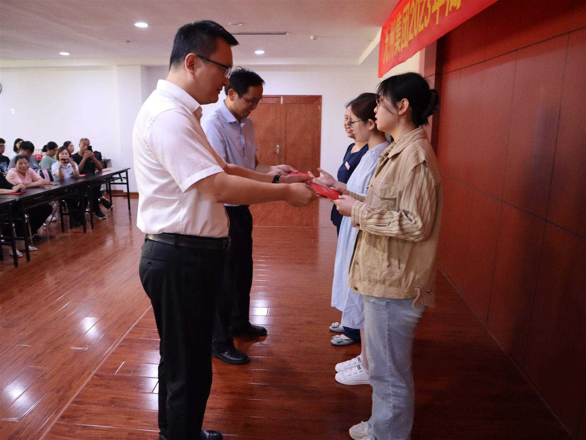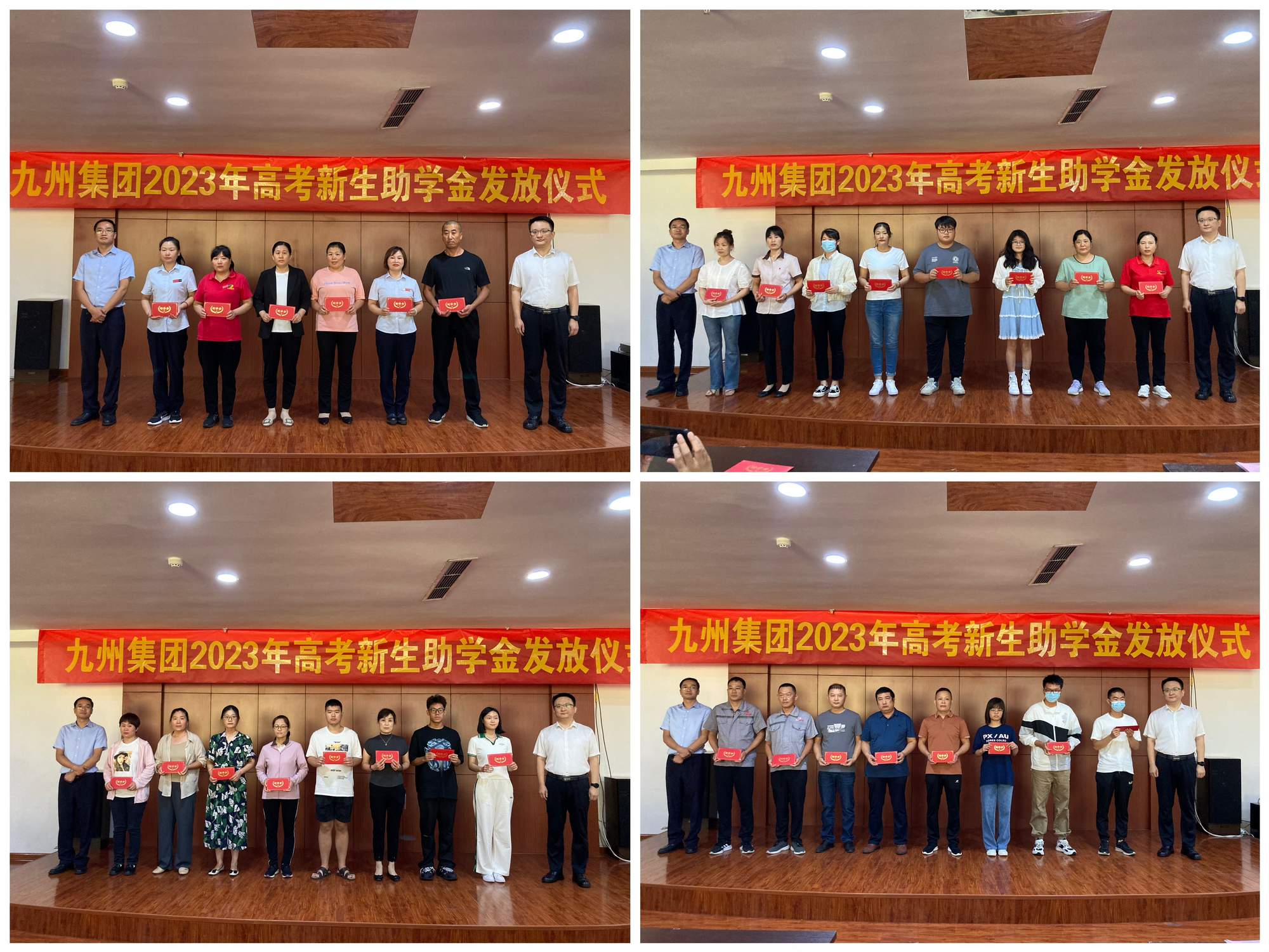 會上,為升入大學的職工子女頒發(fā)九州集團2023年高考助學金。本年度,集團共為91名升入大學的職工子女發(fā)放高考助學金共計23.5萬元。
