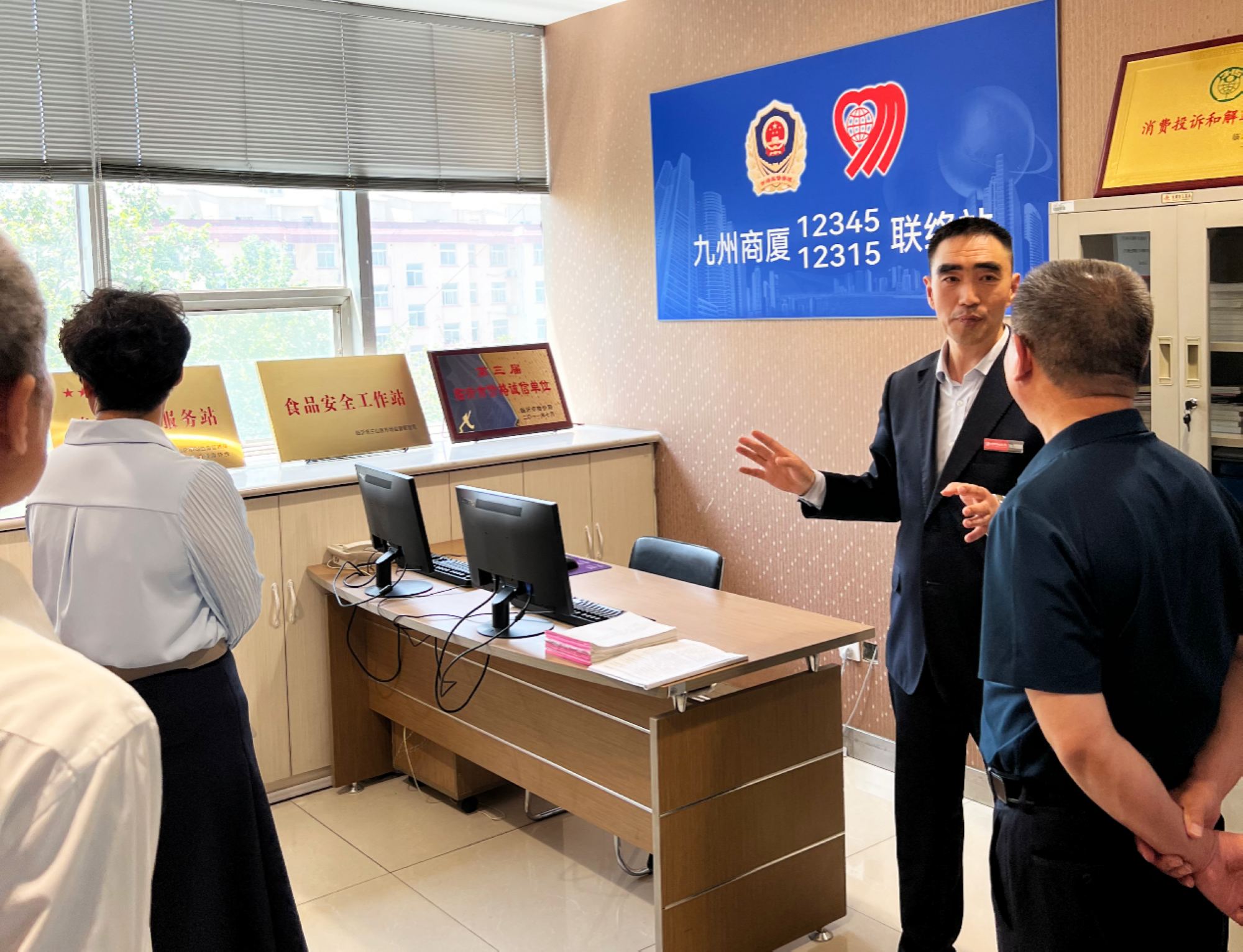 4月25日上午,濟(jì)寧市市場(chǎng)監(jiān)管局一級(jí)調(diào)研員、消協(xié)常務(wù)副會(huì)長(zhǎng)張艷果一行到九州商業(yè)大廈解放路店調(diào)研消費(fèi)維權(quán)服務(wù)站工作開展情況,臨沂市市場(chǎng)監(jiān)管局黨組成員、副局長(zhǎng)李曉及分管消保工作的領(lǐng)導(dǎo)陪同。