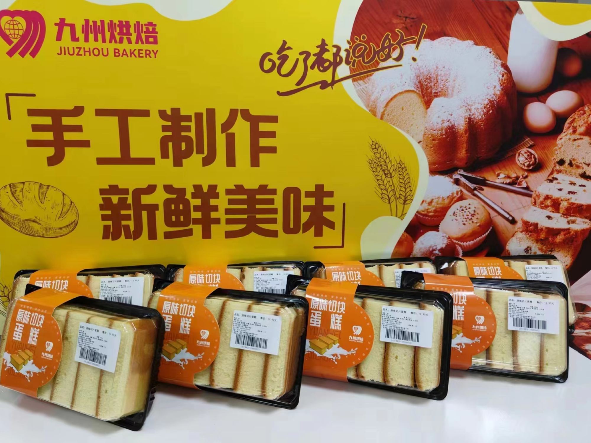 目前,加工中心的第一批產(chǎn)品已經(jīng)陸續(xù)到店,現(xiàn)有原味切塊蛋糕、戚風(fēng)蛋糕胚、豆沙吐司面包、椰汁餐包、全麥切片面包、提子切片面包等多個種類。