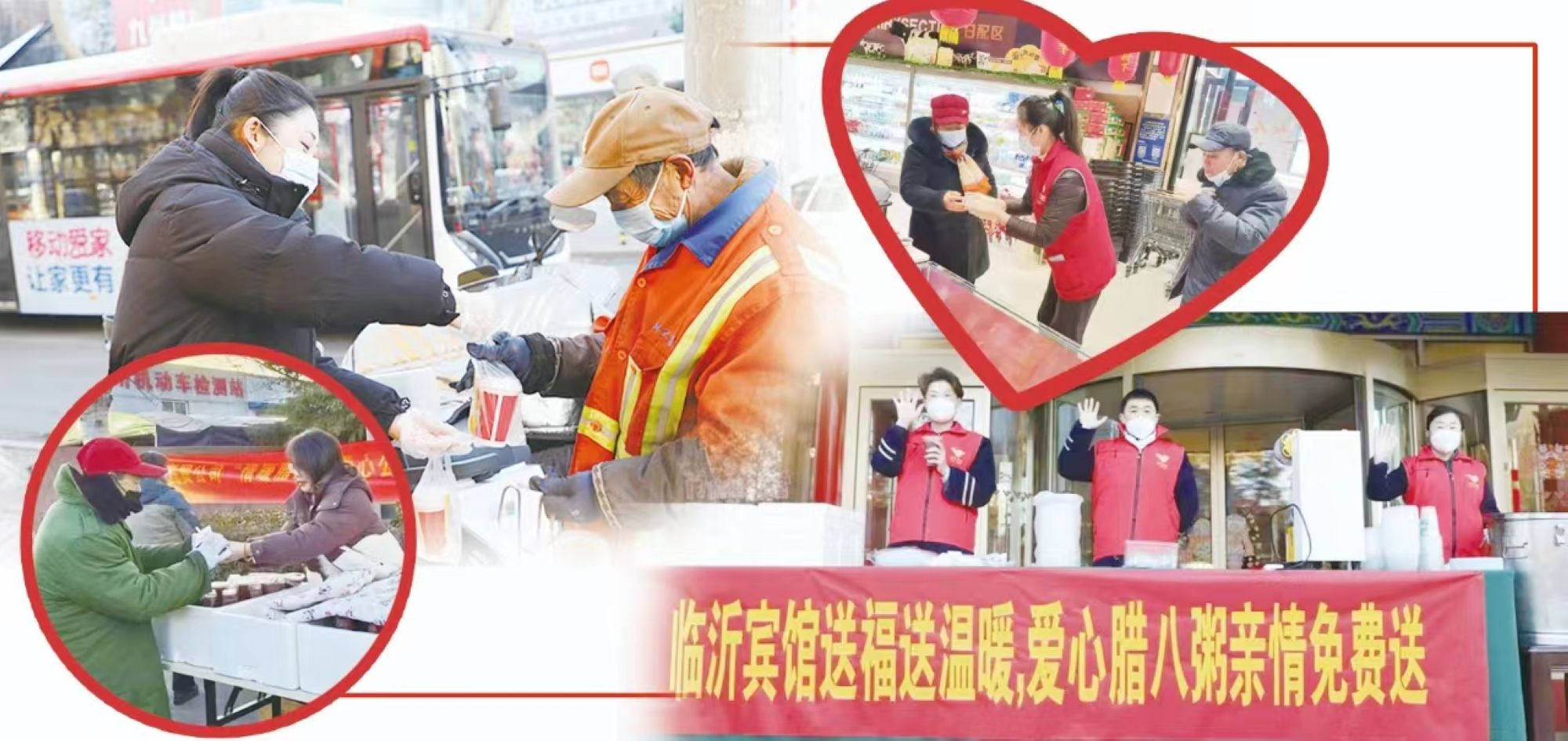 在九州超市部分門店內(nèi),工作人員熱情地為顧客遞上一碗碗熱氣騰騰的粥。汽貿(mào)公司的員工們則穿梭在街頭巷尾,將粥送到環(huán)衛(wèi)工人們手中,其中小于在送完粥后,臉上洋溢著幸福的笑容,感慨道:“看到他們喝粥時臉上綻放的笑容,我這心里滿是溫暖,感覺一早上的忙碌都值了。”在九州美食園門口、臨沂賓館開發(fā)區(qū)店,員工將臘八粥裝好打包,送到周邊執(zhí)勤特警、環(huán)衛(wèi)工人、過往的公交車司機和市民手里。