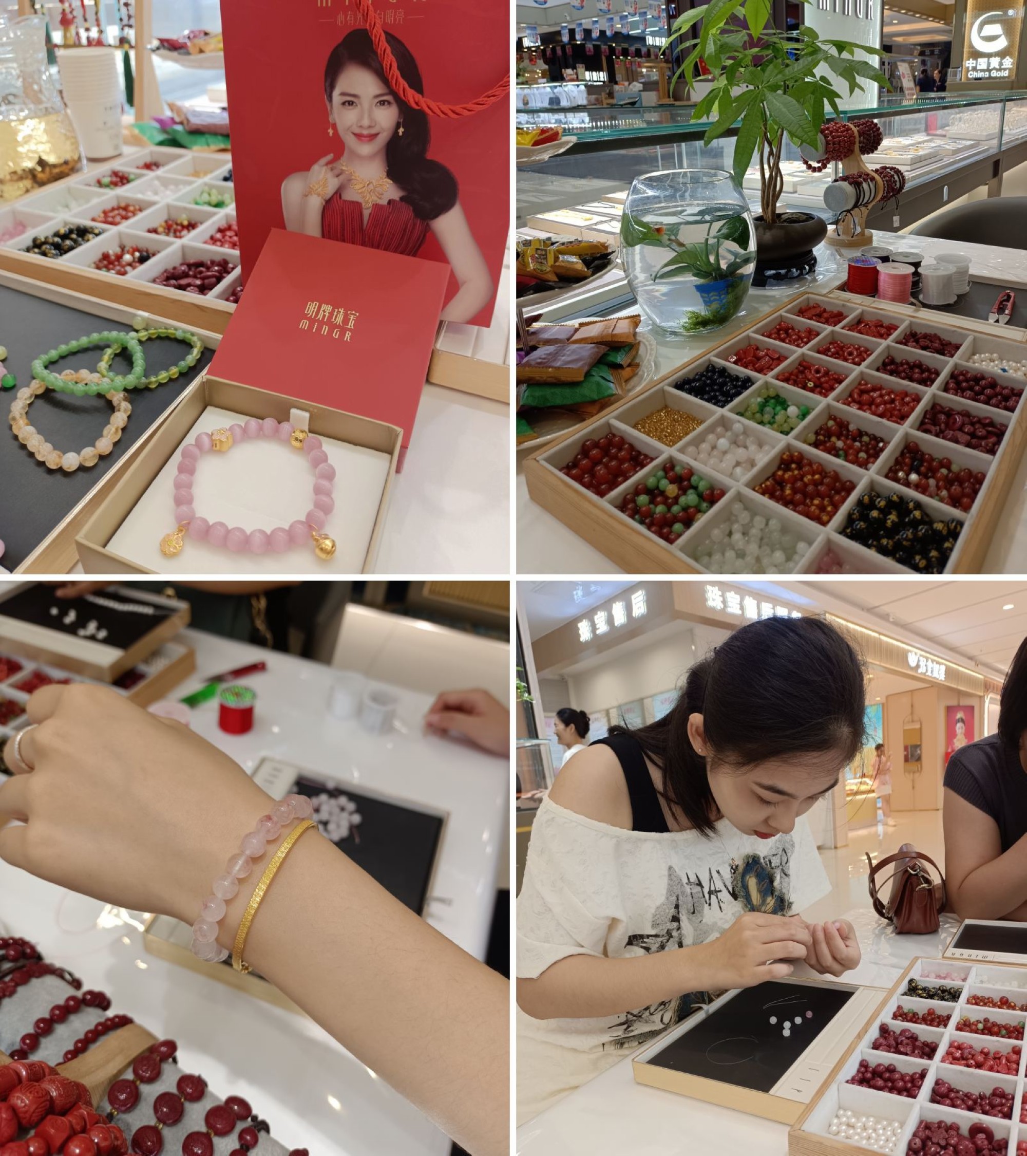 8月9日至10日,九州商業(yè)大廈在解放路店一樓商場明牌珠寶專柜開展創(chuàng)意串珠DIY活動,現(xiàn)場邀請多位會員顧客參加。