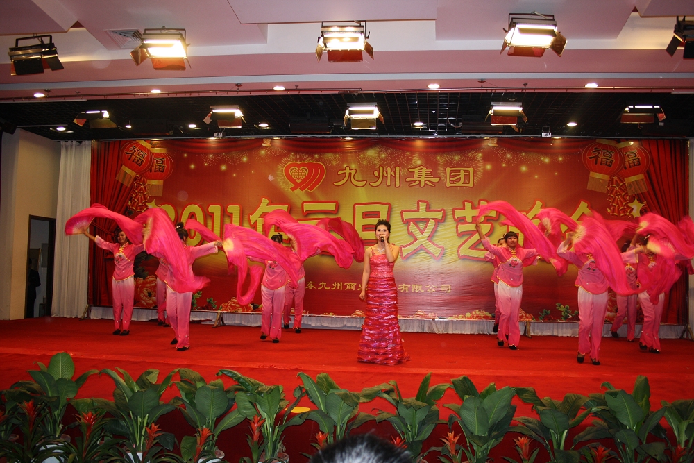 集團(tuán)舉行2011年元旦文藝晚會 歡聲笑語辭舊歲,鶯歌燕舞迎新春,山東九州商業(yè)集團(tuán)2011年元旦文藝晚會于12月28日晚在臨沂賓館舉行。集團(tuán)領(lǐng)導(dǎo)楊沂城、王佐文、楊永東等與五百多名員工一起觀看了演出。 晚會節(jié)目形式多樣,歌舞、小品、三句半、詩歌朗誦、武術(shù)表演等節(jié)目從不同的角度熱情謳歌了九州人在2010年所取得的輝煌成績。晚會在歌伴舞《和諧中國 和諧九州》中,拉開了序幕;群口相聲《九州運(yùn)動會》形式新穎,寓教于樂,在輕松愉快中向觀眾展示了九州人團(tuán)結(jié)奮進(jìn)、勇于創(chuàng)新的精神風(fēng)貌;民族舞《荷塘月色》表演清新脫俗,意境優(yōu)美,讓臺下的觀眾如癡如醉;詩朗誦《我心中的九州》和《我愛九州》,表達(dá)出了廣大九州員工立足本職,無私奉獻(xiàn)的決心,道出了廣大員工對企業(yè)的無限熱愛;《旅游服務(wù)禮儀展示》節(jié)目,向廣大觀眾展示了賓館員工良好的儀容儀表和嫻熟的崗位服務(wù)技能;小品《鳳落九州》語言詼諧幽默,表演生動活動,博得臺下觀眾陣陣掌聲;歌伴舞《笑口常開》節(jié)奏歡快,充滿青春的氣息,展現(xiàn)了九州人朝氣蓬勃、積極向上的良好精神風(fēng)貌。最后,晚會在合唱《九州歡迎你》中落下帷幕。 整臺晚會氣氛熱烈、節(jié)目精彩、笑語不斷,始終洋溢著熱情、和諧、歡樂的氣氛。廣大員工相聚一起共同分享著2010年集團(tuán)所取得的輝煌成績,也期待著更加美好的2011年。