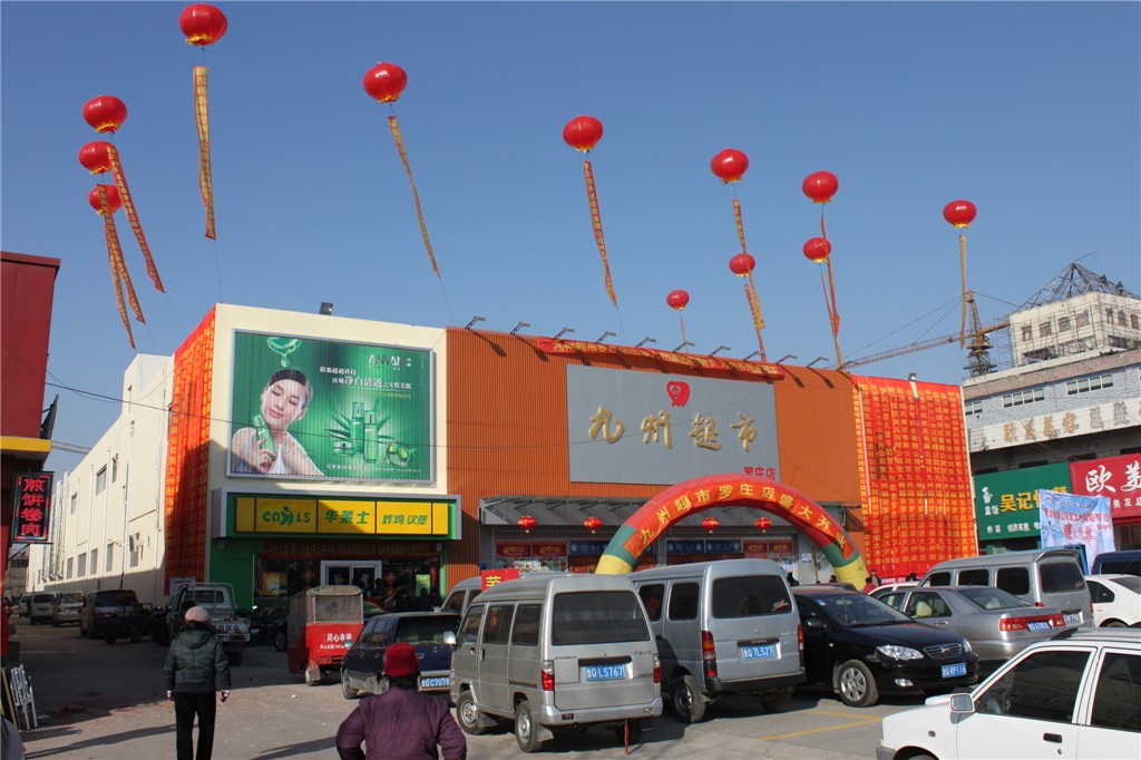 1月6日的早晨,晨曦在炫彩亮麗的天際早早綻開了暖暖的笑靨,陽光顯得格外溫馨。新年喜事接連不斷,歡樂在九州超市內(nèi)氤氳環(huán)繞。位于羅莊區(qū)萬泉商城南側(cè)的九州超市羅莊店迎著喜悅的歡歌,在悠遠(yuǎn)的晨鐘聲里隆重開業(yè)。 早上8點(diǎn)多,羅莊店門前圍滿了周圍聞?dòng)嵍鴣淼念櫩,廣場上被喜悅鬧翻了天,36掛鞭炮齊鳴,現(xiàn)場演出節(jié)目精彩紛呈,現(xiàn)場開業(yè)氣氛熱烈。門前的顧客滿是期盼的笑容,排著長長的隊(duì)伍等待著羅莊店隆重開業(yè)。超市賣場內(nèi),員工忙著整理貨架上的商品,洗刷地面,以靚麗清新的購物環(huán)境迎接顧客的光臨。爆竹聲剛停,顧客就迫不及待地涌向賣場。生鮮區(qū)內(nèi),由產(chǎn)地直供直銷的新鮮、低價(jià)蔬菜,吸引了大量的客流,有效拉動(dòng)了賣場人氣;食品散糧區(qū)內(nèi),社區(qū)百姓在低價(jià)、促銷活動(dòng)前駐足,爭相選購質(zhì)優(yōu)價(jià)廉的日常生活必備品;服裝鞋帽區(qū)內(nèi),服裝款式新穎,顧客被深深的吸引。整個(gè)賣場里,形式多樣的促銷活動(dòng)讓顧客流連忘返購物氣氛熱烈,客流充實(shí)。 九州超市羅莊店位于萬泉商場南側(cè)50米路西,緊靠羅四路,總經(jīng)營面積達(dá)7700平方米,是我集團(tuán)超市公司2011年開設(shè)的第一家門店。經(jīng)營場所共分兩層,一樓主要經(jīng)營生鮮八品、食品及收銀區(qū)外精品專柜等,二樓突出服裝鞋帽專柜經(jīng)營特色,百貨日化也是別出新意。