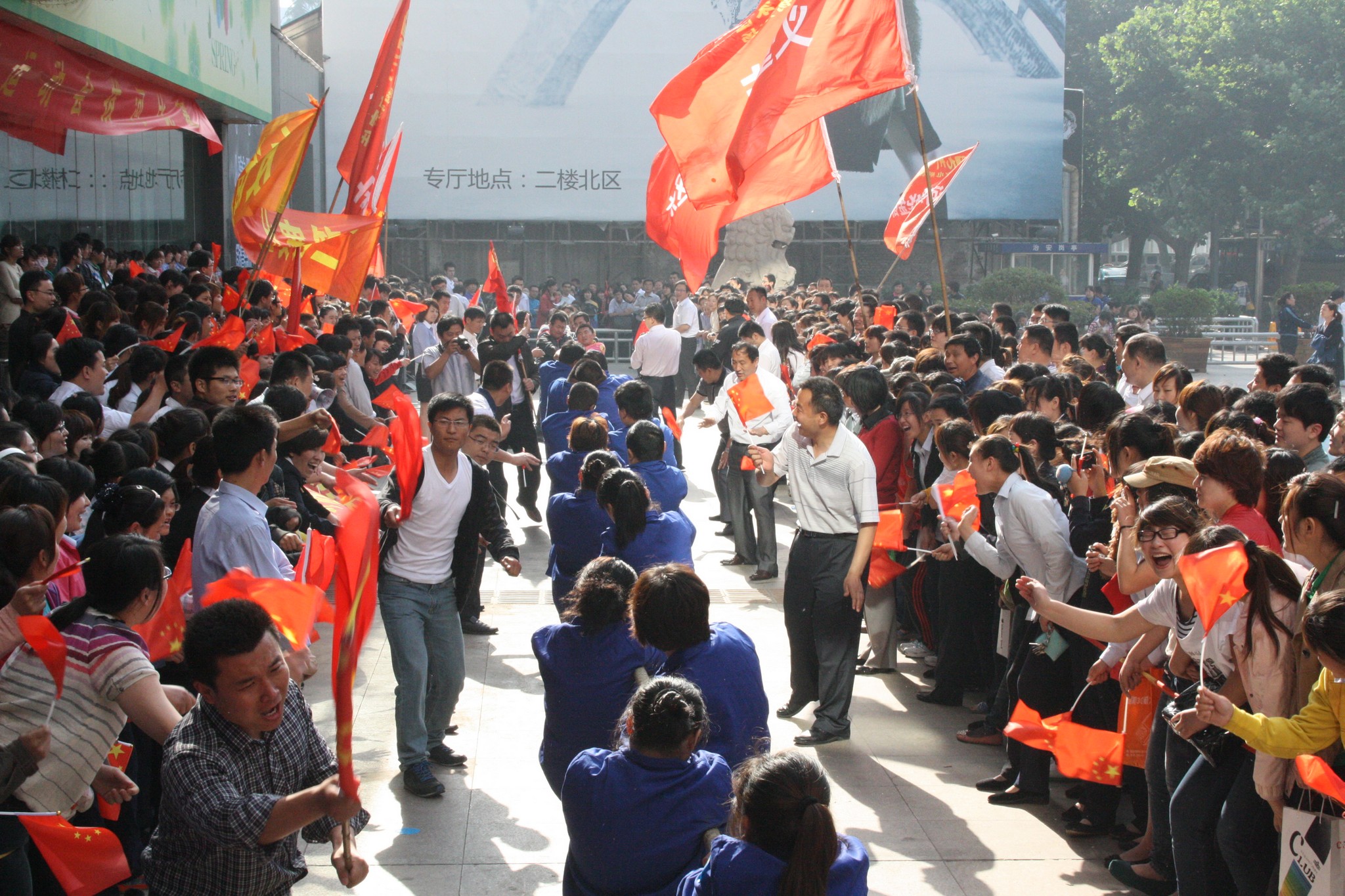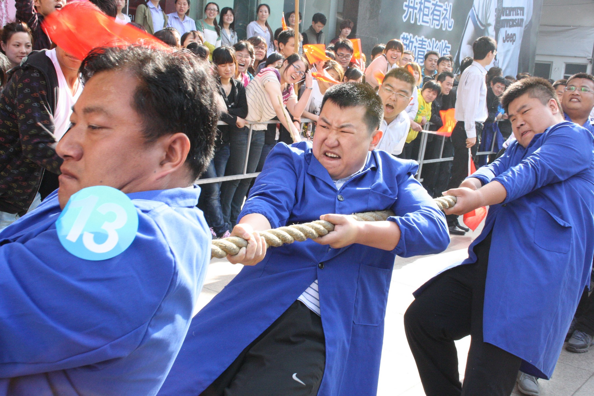 5月16日,2012年職工運(yùn)動(dòng)會(huì)拔河比賽項(xiàng)目在九州大廈門前廣場(chǎng)舉行。大廈、超市、賓館、宜家佳、汽貿(mào)和集團(tuán)行政六支代表隊(duì)參加比賽。經(jīng)過(guò)激烈角逐,超市、宜家佳和汽貿(mào)分獲冠、亞、季軍。
