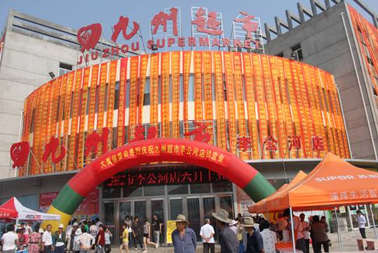 6月15日,位于河?xùn)|經(jīng)濟(jì)開發(fā)區(qū)大崗社區(qū)的九州超市李公河店盛大開業(yè)。九州超市李公河店上下兩層,經(jīng)營(yíng)面積5600多平方米,一樓主要經(jīng)營(yíng)生鮮、小食品、熟食、鮮肉等,二樓主要經(jīng)營(yíng)服裝、針織、日化、百貨等。