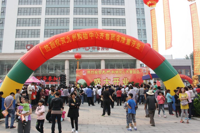 9月18日在美麗的北城新區(qū),九州購物中心齊魯園店舉行了盛大的開業(yè)慶典。市委常委、副市長尹長友,市人大副主任馮安,市政協(xié)咨詢楊榮三、李桂秀,市工商局副局長李峰,市商務(wù)局副調(diào)研員劉展志,市消費(fèi)者協(xié)會秘書長孔令坤,北城新區(qū)管委會有關(guān)負(fù)責(zé)人,冠魯集團(tuán)有關(guān)負(fù)責(zé)人,山東大學(xué)教授、商業(yè)運(yùn)營專家董建平,集團(tuán)領(lǐng)導(dǎo)楊沂城、王佐文、楊永東等出席開業(yè)慶典。 九州購物中心齊魯園店位于北城新區(qū)天津路與汶河交匯處東100米路南,該店是集精品百貨、生活超市、餐飲娛樂等為一體的綜合性購物中心,經(jīng)營面積16000多平方米,配套停車位200余個(gè)。它的開業(yè),是我集團(tuán)積極響應(yīng)市委、市府號召,繁榮北城新區(qū)商貿(mào)業(yè),方便居民生活,提升居民生活水平的具體體現(xiàn);也是企業(yè)加快發(fā)展,做大做強(qiáng)超市業(yè)態(tài)邁出的重要一步。 九州購物中心齊魯園店將用一流的購物環(huán)境、優(yōu)良的商品和優(yōu)質(zhì)的服務(wù),真誠服務(wù)于廣大消費(fèi)者,為北城新區(qū)經(jīng)濟(jì)的繁榮發(fā)展做出積極貢獻(xiàn)。