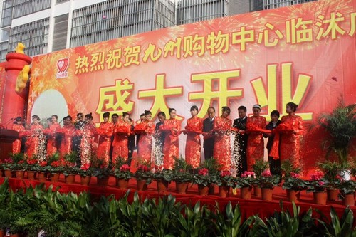 11月24日,位于臨沭縣城常林大街的九州購物中心臨沭店正式開業(yè)。 臨沭縣委書記、縣人大常委會主任任慶虎,縣政協(xié)主席鐘華,縣人大常委會副主任王景光,縣政府副縣長王新端等縣領(lǐng)導(dǎo);山東常林集團(tuán)董事長張義華,副總經(jīng)理盛中義,上海同濟(jì)大學(xué)教授、景觀設(shè)計(jì)院院長朱群等嘉賓;董事長楊沂城,黨委書記王佐文,副總經(jīng)理杜培云、任重群等集團(tuán)領(lǐng)導(dǎo);以及經(jīng)銷商代表、消費(fèi)者等千余人參加開業(yè)慶典儀式。 臨沭縣政府副縣長王新端代表縣委、縣府在開業(yè)儀式上講話。他對九州購物中心臨沭店的開業(yè)表示熱烈的祝賀,對我集團(tuán)多年來誠信經(jīng)營,科學(xué)管理所取得的優(yōu)異成績給予充分肯定,希望九州購物中心臨沭店的開業(yè)為提升臨沭城市綜合服務(wù)水平、加快現(xiàn)代服務(wù)業(yè)發(fā)展做出積極貢獻(xiàn)。 山東常林集團(tuán)副總經(jīng)理盛中義代表常林集團(tuán)致賀詞。他代表常林集團(tuán)對九州購物中心臨沭店的順利開業(yè)表示熱烈祝賀,認(rèn)為今天的順利開業(yè)是雙方強(qiáng)強(qiáng)聯(lián)合、攜手共贏、共謀發(fā)展的結(jié)果,他代表常林集團(tuán)祝愿九州購物中心臨沭店生意興隆,事業(yè)發(fā)達(dá)。 楊永東代表集團(tuán)致歡迎詞。他首先對臨沭縣委、縣府等各級有關(guān)部門,山東常林集團(tuán)等單位對于購物中心臨沭店的順利開業(yè)給予的支持與幫助表示感謝。并表示,今后九州購物中心臨沭店將在臨沭縣委、縣府和各級有關(guān)部門的正確領(lǐng)導(dǎo)下,用一流的購物環(huán)境、優(yōu)質(zhì)的服務(wù)和優(yōu)良的商品,為臨沭城鄉(xiāng)居民服務(wù),為臨沭縣商貿(mào)經(jīng)濟(jì)的繁榮發(fā)展做出應(yīng)有貢獻(xiàn)。 九州購物中心臨沭店位于臨沭縣城常林大街,是集精品百貨、數(shù)碼家電、生活超市、餐飲娛樂等為一體的綜合性購物中心,經(jīng)營面積3萬余平方米,是目前臨沭縣經(jīng)營規(guī)模最大、經(jīng)營品種最多、裝修檔次最高、服務(wù)最完善的大型購物中心。