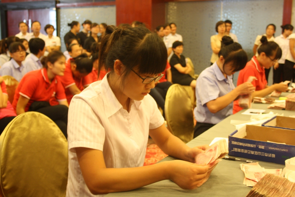 8月22日,集團(tuán)第三屆業(yè)務(wù)技能大賽錄入、點(diǎn)鈔項(xiàng)目決賽在臨沂賓館舉行。由各單位選撥推薦的120名員工分別參加了錄入和點(diǎn)鈔項(xiàng)目決賽。市總工會(huì)黨組成員、副主席張濤,集團(tuán)董事長(zhǎng)楊沂城,黨委書記王佐文等出席本次活動(dòng)并為比賽獲獎(jiǎng)選手頒獎(jiǎng)。 本屆業(yè)務(wù)技能大賽共設(shè)33個(gè)比賽項(xiàng)目,自5月份起已陸續(xù)進(jìn)行20多個(gè)項(xiàng)目,錄入和點(diǎn)鈔是今年大賽中集團(tuán)統(tǒng)一項(xiàng)目,比賽前各單位和各部門在廣泛開展崗位練兵的基礎(chǔ)上,層層選拔,最終有60名員工參加集團(tuán)錄入決賽,60名員工參加集團(tuán)點(diǎn)鈔決賽。經(jīng)過激烈角逐,有2個(gè)單位分獲兩項(xiàng)團(tuán)體一等獎(jiǎng),有4個(gè)單位分獲兩項(xiàng)團(tuán)體二等獎(jiǎng),有6個(gè)單位分獲兩項(xiàng)團(tuán)體三等獎(jiǎng);有6名員工分獲兩項(xiàng)個(gè)人一等獎(jiǎng),有14名員工分獲兩項(xiàng)個(gè)人二等獎(jiǎng),有23名員工分獲兩項(xiàng)個(gè)人三等獎(jiǎng);有77名員工分獲兩項(xiàng)個(gè)人優(yōu)秀獎(jiǎng)。 開展“崗位練兵、技術(shù)比武”活動(dòng),是提高職工業(yè)務(wù)素質(zhì)水平、加強(qiáng)職業(yè)化隊(duì)伍建設(shè)的重要舉措,也是實(shí)現(xiàn)企業(yè)持續(xù)、健康、科學(xué)發(fā)展的重要途徑。廣大職工通過參加活動(dòng),不僅提高了本身業(yè)務(wù)技能,同時(shí)展示自身本領(lǐng)、挖掘自身潛能、強(qiáng)化了自身素質(zhì)。