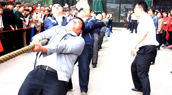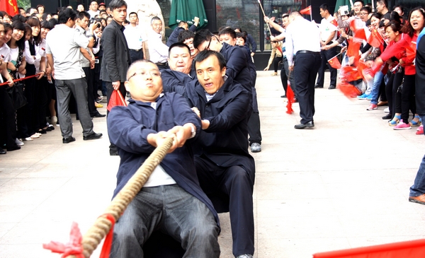 九州大廈代表隊 凝聚團結(jié)的力量,展示協(xié)作的魅力。5月18日,集團運動會拔河比賽項目在九州商業(yè)大廈門前廣場舉行。 本次比賽共有各經(jīng)營單位和集團行政支部組成的六支代表隊參加。每隊派出男女各8名運動員,經(jīng)過小組循環(huán)賽、半決賽和總決賽,共十輪緊張激烈的比賽,最終,連鎖超市公司代表隊獲得冠軍,臨沂賓館代表隊和九州大廈代表隊分獲二、三名,九州宜家佳代表隊、汽車銷售公司代表隊和集團行政代表隊分列四至六名。 通過舉辦拔河比賽活動,不僅豐富了員工的文化生活,也培養(yǎng)了大家團結(jié)協(xié)作、拼搏進取、永不放棄、堅持到底的精神。