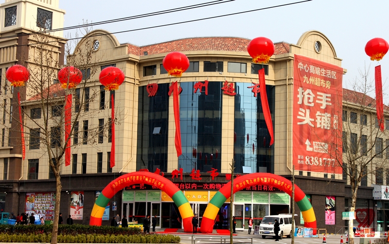 3月30日,九州超市公司慧谷領(lǐng)御店盛裝開業(yè)。該店坐落于河?xùn)|區(qū)人民大街與孝友路交匯處西北角,經(jīng)營面積近5000平方米,主營黃金珠寶、手機數(shù)碼、生鮮熟食、酒水飲料、膨化休閑、地方特產(chǎn)、日化洗滌、家居百貨、服裝鞋帽、針織床品、圖書影像、文體辦公等商品。