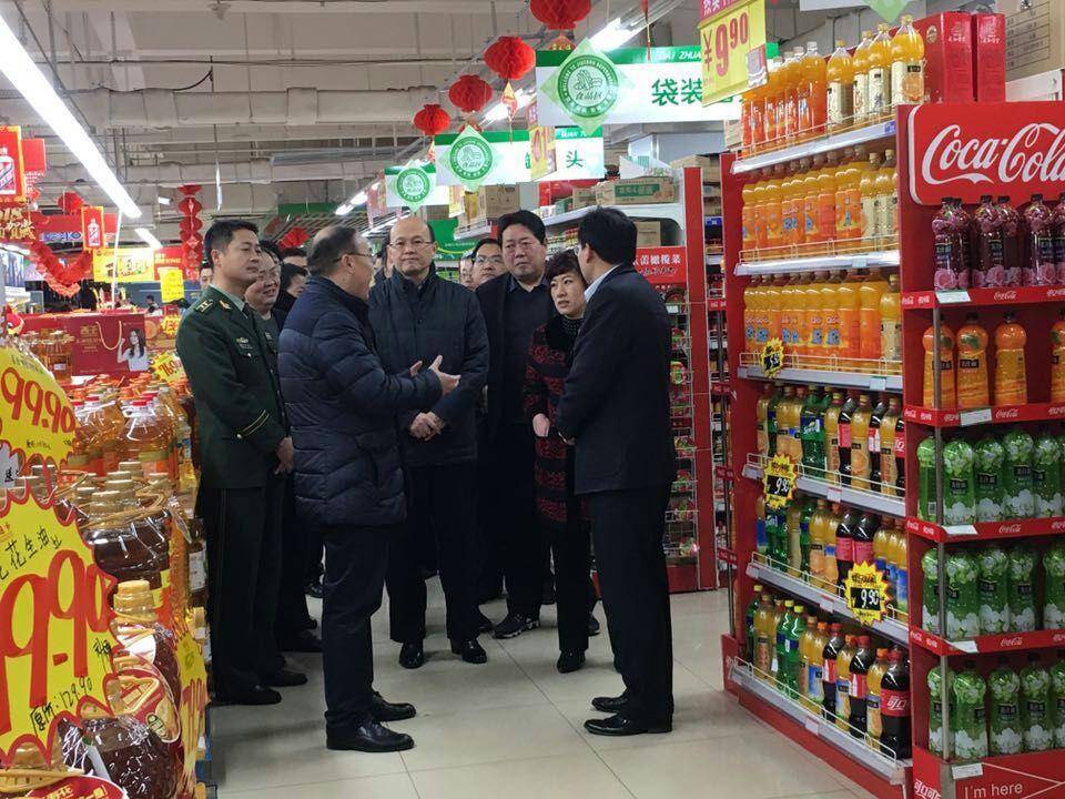 2月13日上午,河?xùn)|區(qū)委副書記、區(qū)長姚運(yùn)明,區(qū)委副書記紀(jì)軍帶隊(duì),到九州超市彭于埠店檢查消防工作開展情況和節(jié)前物資準(zhǔn)備情況。