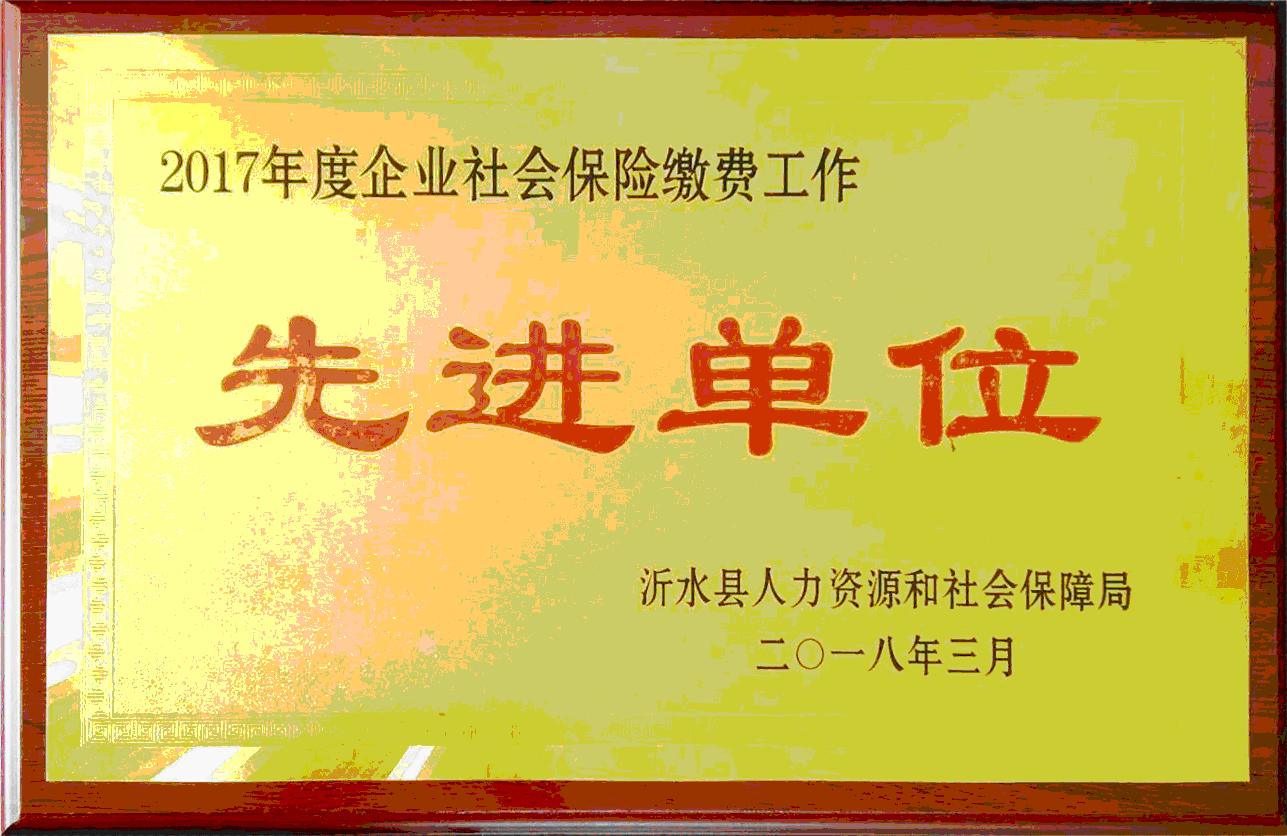 九州大廈沂水門店榮獲沂水縣2017年度企業(yè)社會(huì)保險(xiǎn)繳費(fèi)工作先進(jìn)單位