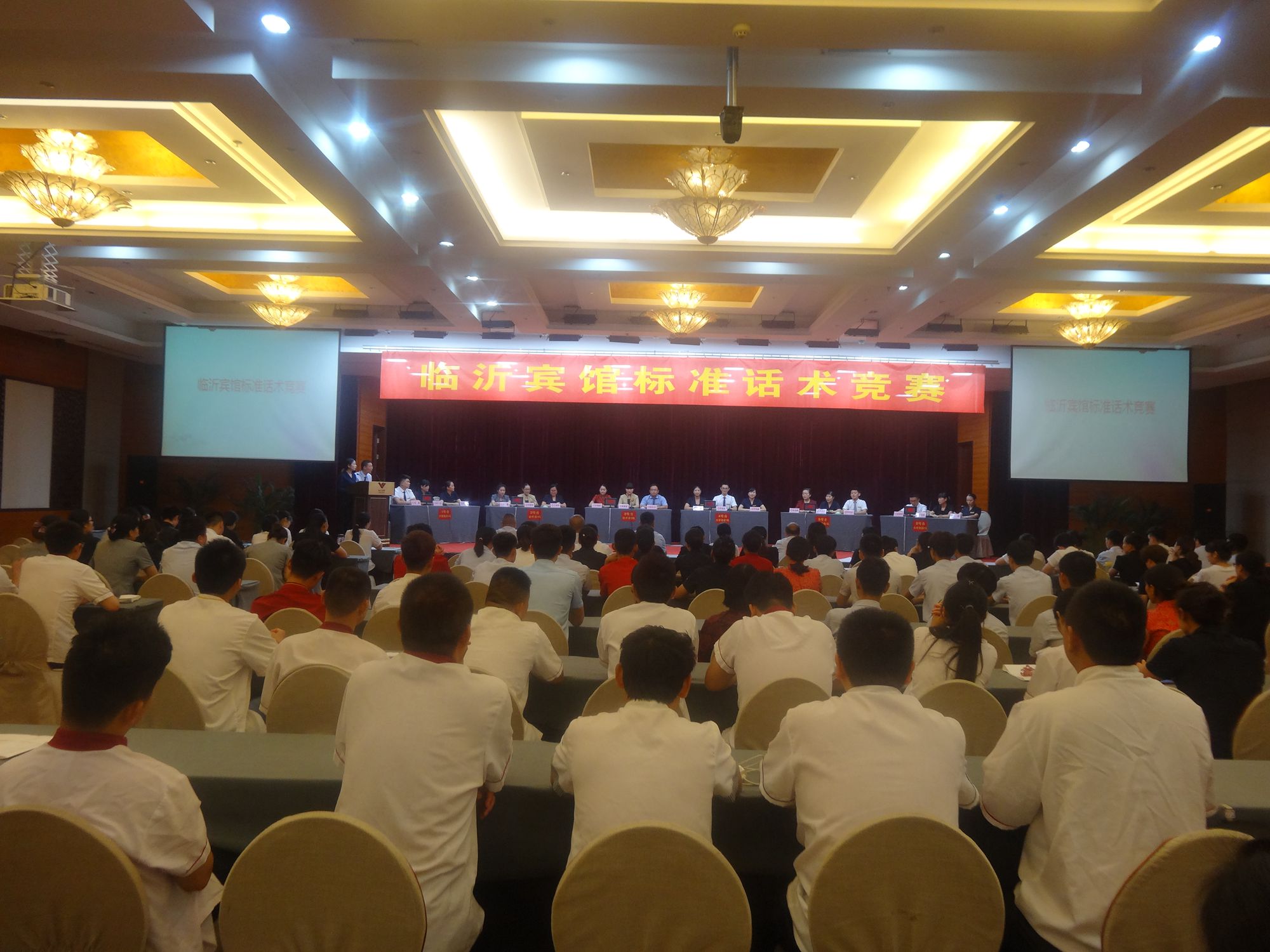 7月31日下午,臨沂賓館標準話術(shù)競賽在沂蒙路店第一會議室成功舉行。經(jīng)過激烈的角逐,最終沂蒙路店1號代表隊獲得冠軍,開發(fā)區(qū)店1號代表隊、沂蒙路店2號代表隊分獲二三名。 本次比賽共分為必答題、搶答題、情景模擬三個部分,每個分店派出兩隊參賽選手,每隊三人。選手通過搶答器進行作答,并顯示實時得分。情景模擬環(huán)節(jié),由不同小組成員分飾顧客和員工,通過員工對突發(fā)情況的處理由評委組對其進行打分。 標準話術(shù)在酒店對客服務(wù)中尤為重要,本次標準話術(shù)競賽選取餐飲、客房、會議等酒店三大主要產(chǎn)品在服務(wù)過程中的服務(wù)用語為題目,制定在各種場景下的標準服務(wù)話術(shù),讓全體員工都能熟練掌握標準服務(wù)用語,并通過情景模擬,展示在各種突發(fā)情況下的處理方式,引發(fā)大家的思考,并應(yīng)用到實際工作中。 本次標準話術(shù)競賽的成功舉辦,有效提高了員工在對客服務(wù)過程中使用標準話術(shù)的意識,對于臨沂賓館標準話術(shù)體系的建立有著重要的意義,各部門也將以此次活動為契機,加強對標準話術(shù)的培訓(xùn)和應(yīng)用,并在實際工作中不斷檢驗和完善,努力夯實服務(wù)基礎(chǔ),不斷提高服務(wù)質(zhì)量。(臨沂賓館辦公室 王本強)