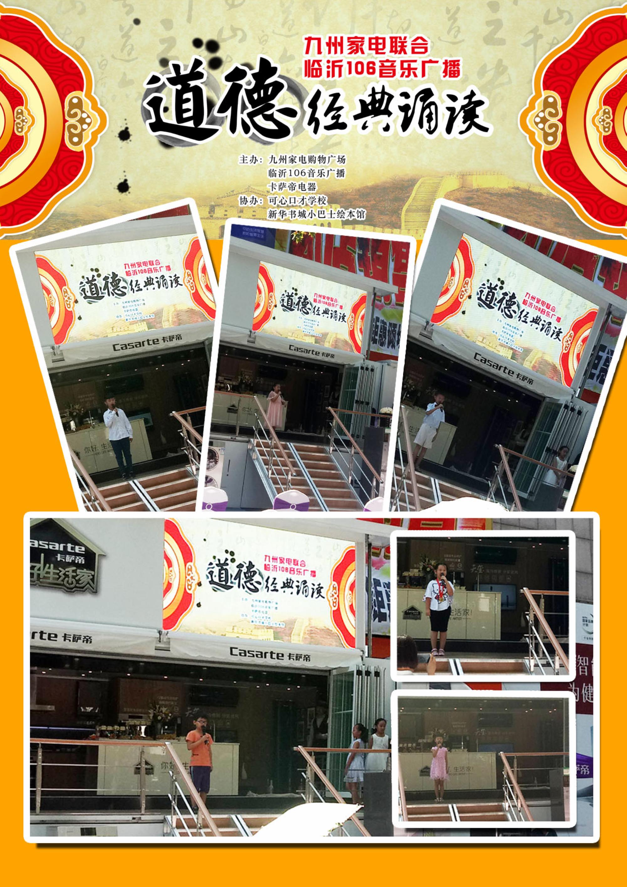 9月8日,由九州家電聯(lián)合FM106音樂廣播共同主辦的道德經(jīng)典誦讀活動在九州家電解放路店門前廣場舉行。