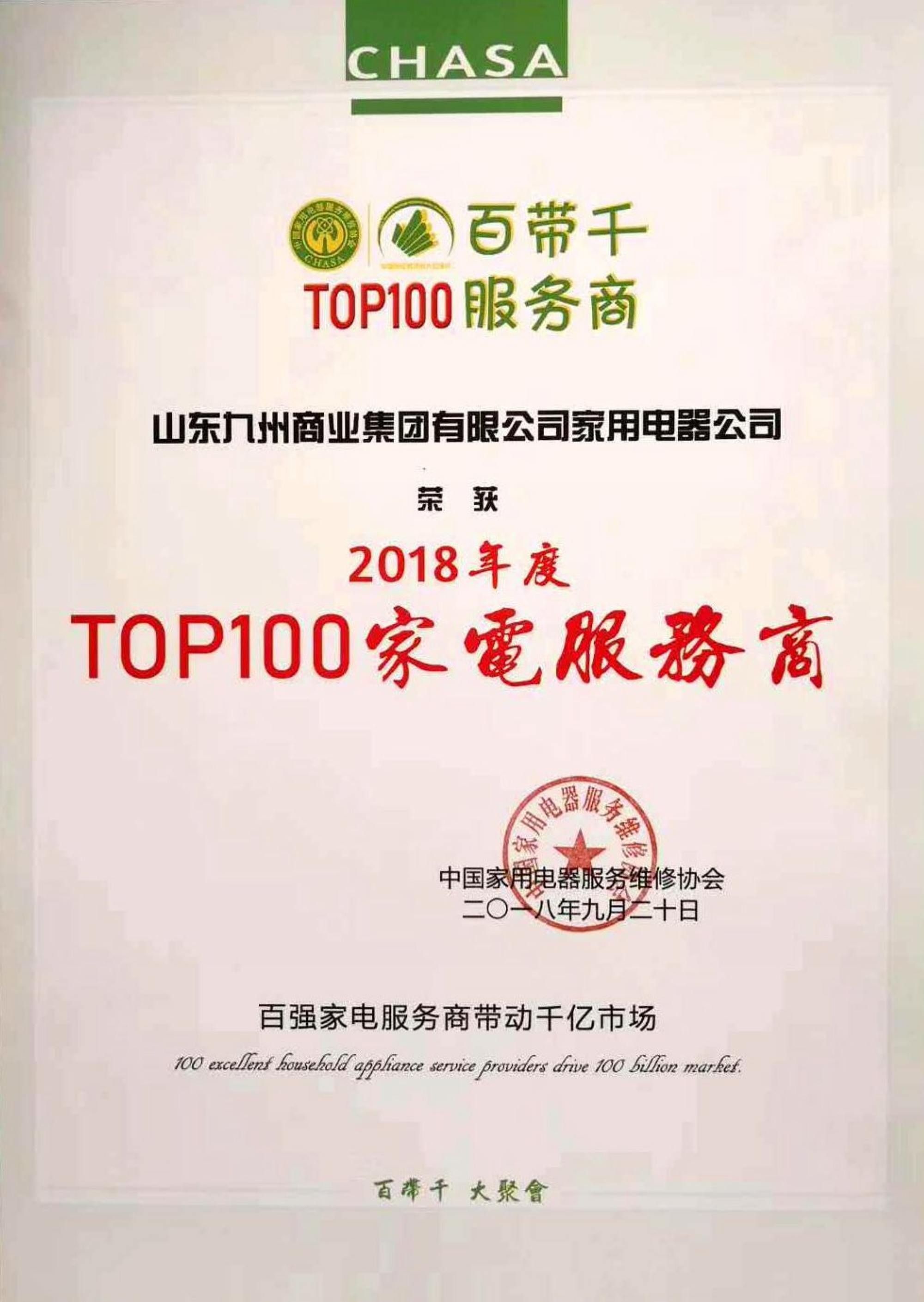 9月19日,中國(guó)家用電器服務(wù)維修協(xié)會(huì)“百帶千”會(huì)議在北京召開,九州家電被授予“TOP100家電服務(wù)商”榮譽(yù)稱號(hào),家電維修中心服務(wù)工程師邵明光被授予“2018年度中國(guó)家電服務(wù)業(yè)形象大使”稱號(hào)。 此次會(huì)議是在家電行業(yè)發(fā)展新常態(tài)下,為提升服務(wù)品質(zhì)、謀求行業(yè)的升級(jí)而召開的,旨在全國(guó)家電行業(yè)中,以百?gòu)?qiáng)家電服務(wù)商帶動(dòng)千億市場(chǎng),打造行業(yè)的更好更快發(fā)展。為百?gòu)?qiáng)家電服務(wù)商提供前瞻預(yù)判、眼觀現(xiàn)實(shí)、交流合作、激情碰撞的機(jī)會(huì);重點(diǎn)支持百?gòu)?qiáng)服務(wù)商發(fā)展及品牌建設(shè)與推廣,建立用戶信任的服務(wù)體驗(yàn)?zāi)J剑l(fā)布用戶服務(wù)滿意度測(cè)評(píng)報(bào)告;以用戶體驗(yàn)為起點(diǎn)設(shè)計(jì)與監(jiān)督管理上門服務(wù)全流程;實(shí)施百?gòu)?qiáng)服務(wù)商與用戶權(quán)益雙重保護(hù)措施,并參與起草上門服務(wù)標(biāo)準(zhǔn)與上門服務(wù)全流程用戶體驗(yàn)標(biāo)準(zhǔn)。 多年來,九州家電始終秉承“顧客如親人,質(zhì)量是生命,創(chuàng)新求發(fā)展,奉獻(xiàn)在九州”的企業(yè)精神,踏踏實(shí)實(shí)做好顧客服務(wù)工作,不斷創(chuàng)新服務(wù)項(xiàng)目和模式,受到廣大消費(fèi)者和業(yè)界同行的廣泛好評(píng)和贊譽(yù)。(九州家電 郭風(fēng)東 陳美玲)