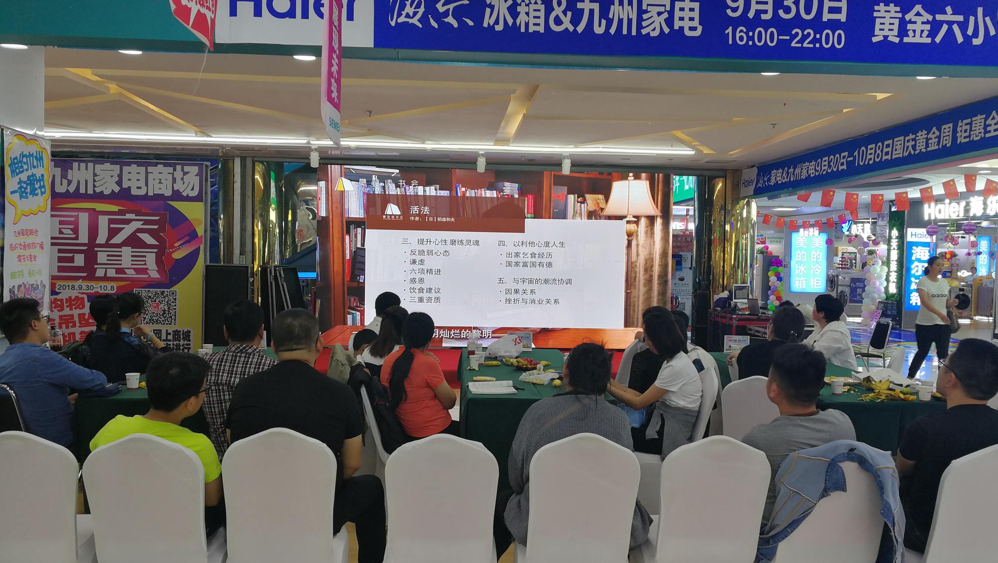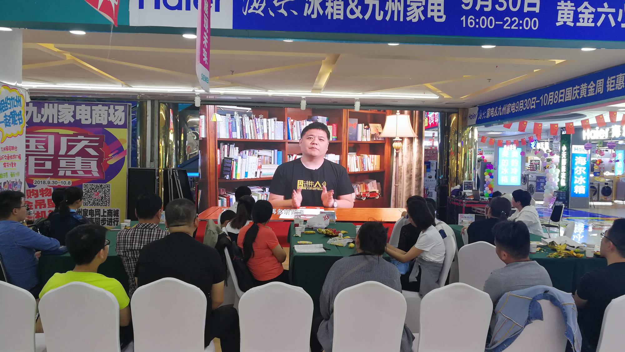 在喜迎國慶之際,九州家電聯(lián)合臨沂交通旅游廣播、樊登讀書會推出了“國慶書香 愛在十月”讀書分享活動,將目前國內(nèi)知名的讀書平臺“樊登讀書會”線下活動現(xiàn)場引入到九州家電賣場。 9月30日晚7點(diǎn),九州家電解放路店二樓商場休閑活動區(qū)域打造成了氛圍深厚的讀書活動現(xiàn)場,近30位攀登讀書會的會員以及現(xiàn)場駐足的顧客參加了當(dāng)晚的閱讀活動。 當(dāng)晚共讀書目為集團(tuán)黨委推薦的《活法》,此書也是攀登讀書會的主推書目。讀書活動以觀看視頻、文字解讀、分享交流為主,大家一起觀看聆聽了樊登老師對《活法》一書的精彩講解,近一個小時的時間,每一位朋友都聽得非常認(rèn)真。隨后主持人引導(dǎo)大家對部分片斷進(jìn)行解讀,最后幾位會員又結(jié)合自己的生活、工作情況分享了讀書心得,他們真誠的講述打動了現(xiàn)場人員,引來一陣陣熱烈的掌聲。 讀書,是人們重要的學(xué)習(xí)方式,是文化傳承的通道,是人類進(jìn)步的階梯。九州家電愿意助力“全民閱讀”,為喜歡讀書的朋友提供交流的平臺,愿意與廣大消費(fèi)者一起,通過讀書交流,促進(jìn)彼此之間共同學(xué)習(xí),共同成長。(九州家電 馬琳)