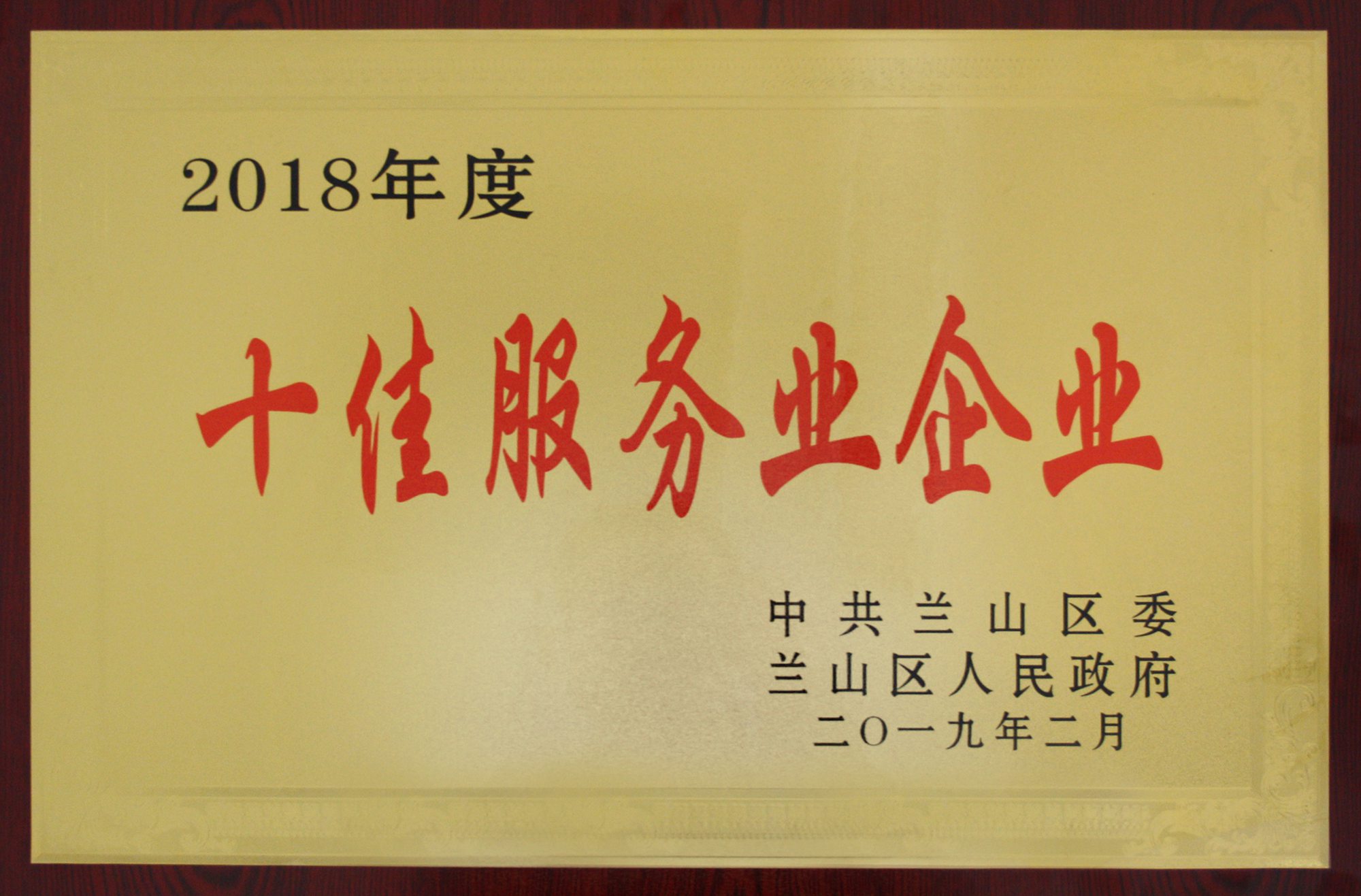 九州集團榮獲蘭山區(qū)“十佳服務(wù)業(yè)企業(yè)”榮譽稱號