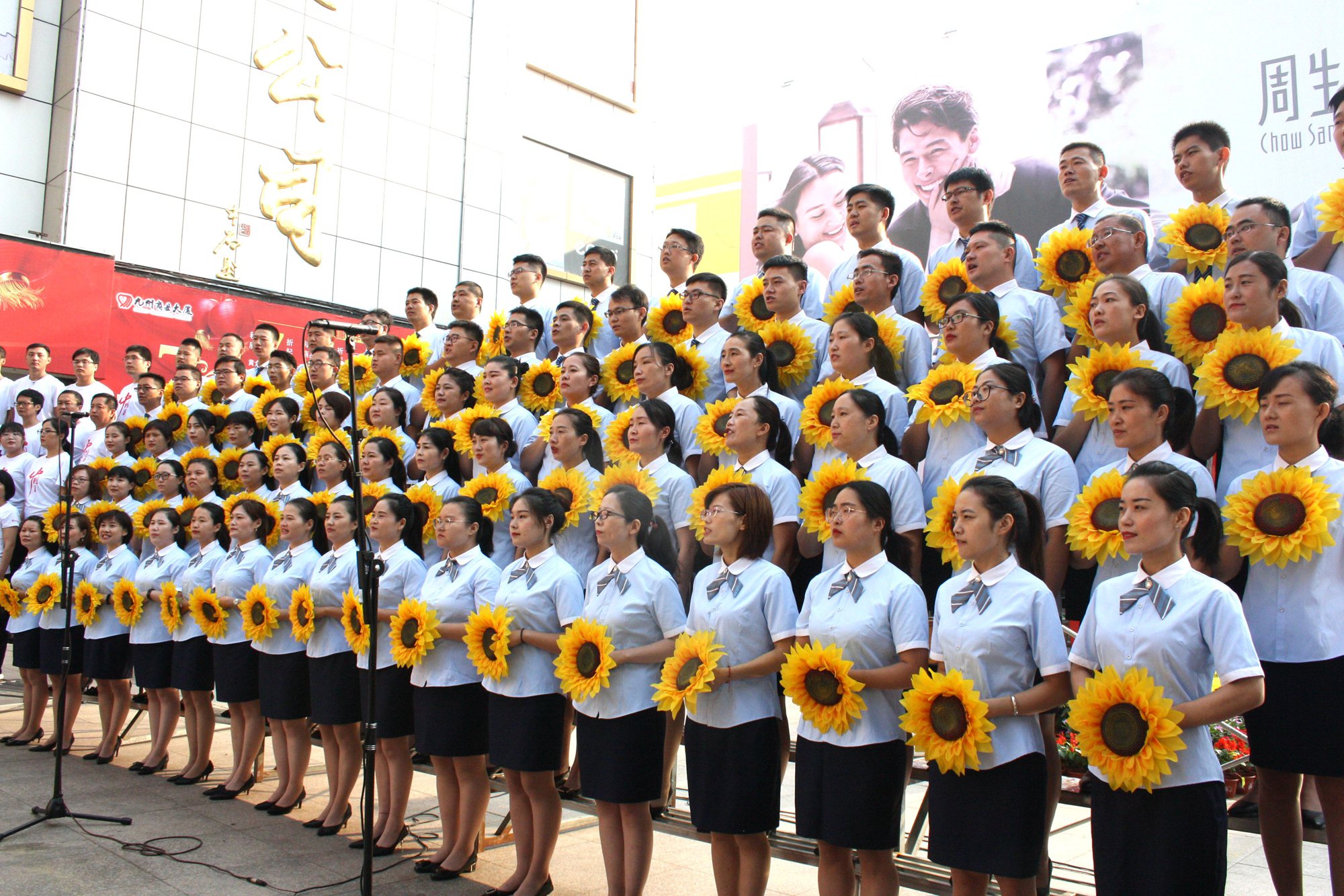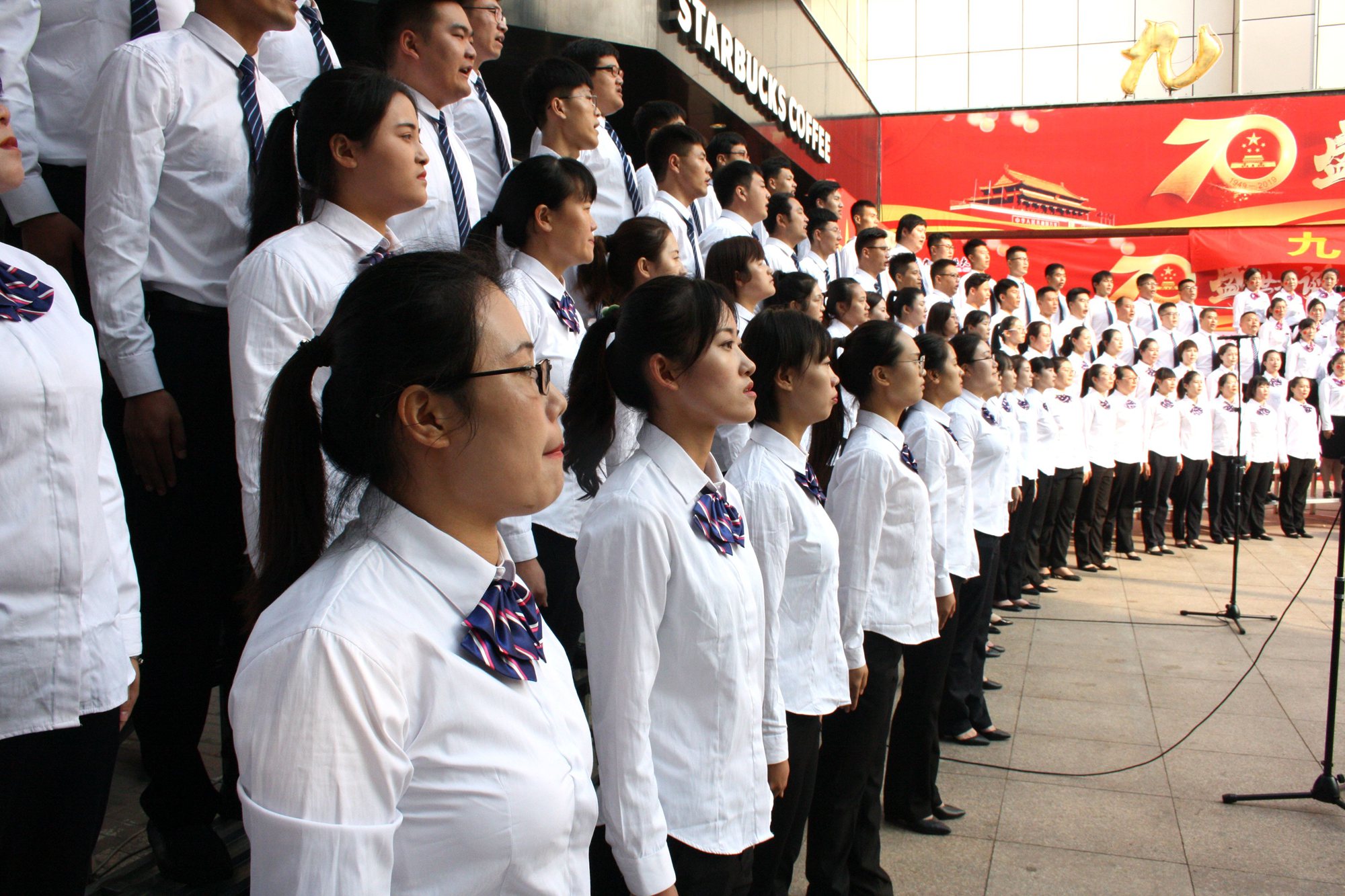 躬逢新時代,頌歌獻(xiàn)祖國。9月30日早上,集團(tuán)在九州商業(yè)大廈門前廣場舉辦慶祝新中國成立70周年歌詠比賽,來自各經(jīng)營單位和集團(tuán)行政處室的六支代表隊共計450余人參加了比賽。 余音繞梁,群情激昂,或雄壯,或深情,或火熱,或沉醉,六支代表隊用動聽的歌聲直抒對祖國的滿腔熱愛,展現(xiàn)新時代九州人深厚的愛國情懷。“起來,不愿做奴隸的人們,把我們的血肉筑成我們新的長城……”比賽伊始,舉行升國旗儀式,伴隨著緩緩升起的五星紅旗,六支代表隊齊唱國歌,斗志昂揚。隨后,全體大合唱《九州集團(tuán)之歌》更加彰顯了九州員工蓬勃向上、意氣風(fēng)發(fā)的精神風(fēng)貌。本次比賽,每支代表隊演唱兩首參賽曲目,以歌詠志、以歌抒懷。《祖國頌》《我和我的祖國》《保衛(wèi)黃河》《大中國》《沒有共產(chǎn)黨就沒有新中國》《歌唱祖國》《不忘初心》《我愛你中國》《祖國不會忘記》《愛我中華》等一首首膾炙人口的歌曲陸續(xù)唱響,唱出了九州人對祖國母親的無限熱愛和美好祝福。嘹亮的歌聲在現(xiàn)場久久回蕩,吸引了越來越多的行人駐足觀看,現(xiàn)場響起一陣又一陣的掌聲。比賽的最后,所有參賽隊員及現(xiàn)場觀眾在指揮老師的統(tǒng)一指揮下,共同唱響《歌唱祖國》,“五星紅旗迎風(fēng)飄揚,勝利歌聲多么嘹亮,歌唱我們親愛的祖國,從今走向繁榮富強……”熟悉的旋律伴隨著飄揚的五星紅旗,將現(xiàn)場的氣氛推向高潮,本次比賽圓滿落下帷幕。 同唱愛國歌,共筑九州夢。當(dāng)下,九州人將青春與熱血融入旋律,將情懷與夢想融入歌聲,獻(xiàn)禮祖國。而今后,九州人將繼續(xù)緊隨偉大祖國發(fā)展步伐,不忘初心,砥礪奮進(jìn),再創(chuàng)事業(yè)新輝煌。(文/劉文靜)