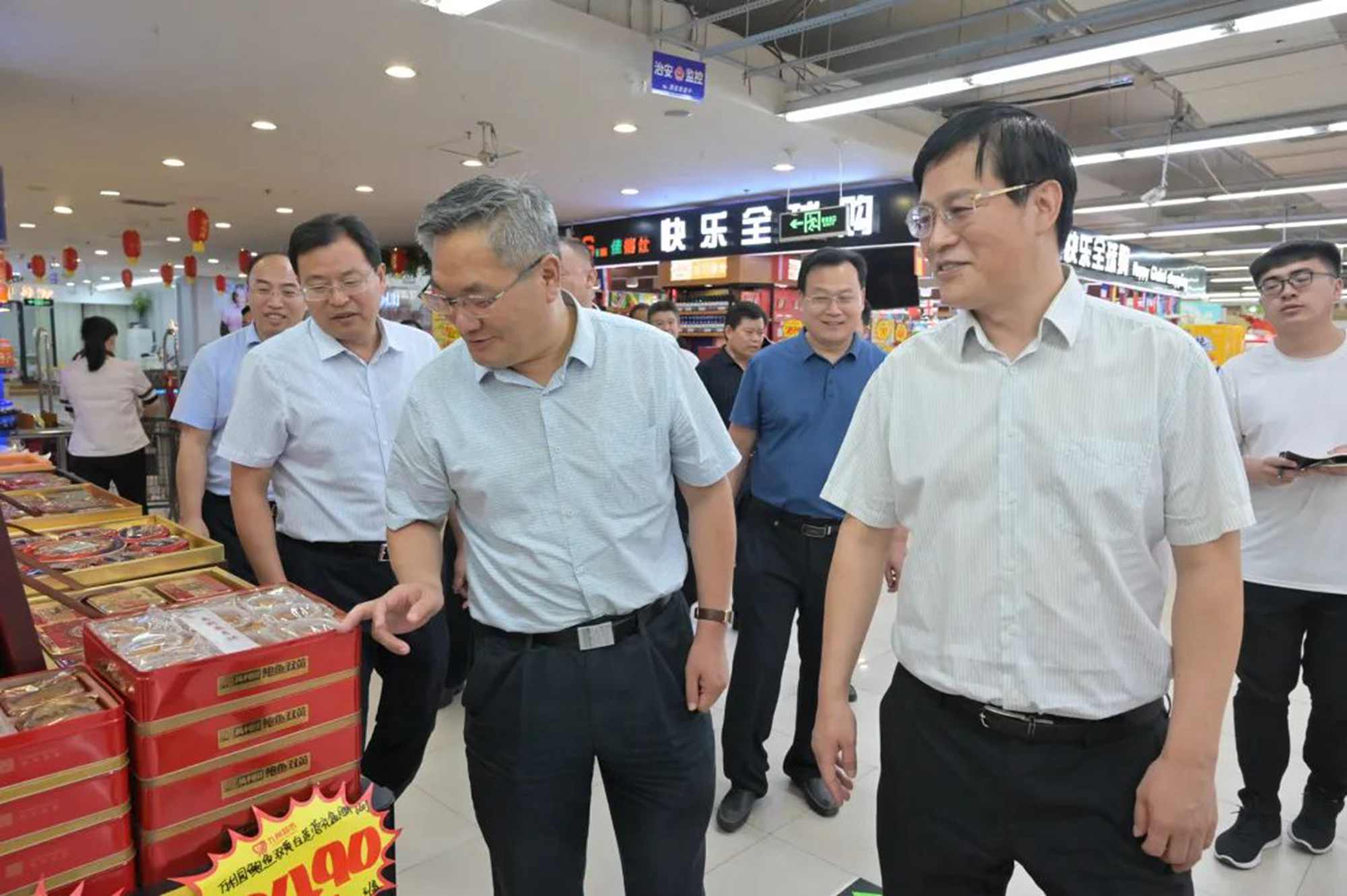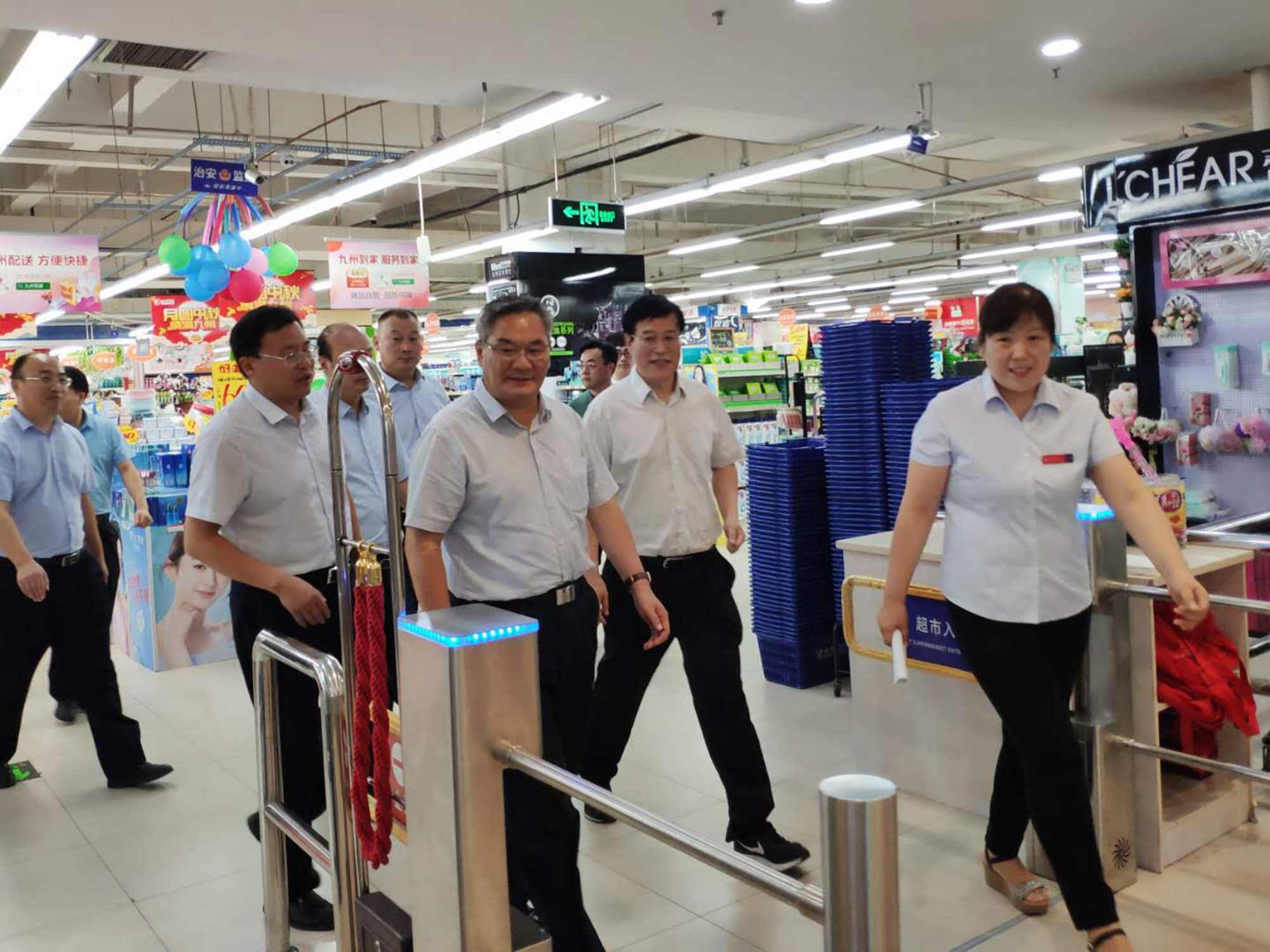 中秋國慶佳節(jié)來臨之際,9月25日上午,市政府副市長劉賢軍帶隊到九州購物中心河東店等地檢查食品安全工作。市市場監(jiān)管局黨組書記、局長黃杰,河東區(qū)委副書記、區(qū)長姚運明,集團董事長、總經理楊永東,超市公司總經理李國等陪同。