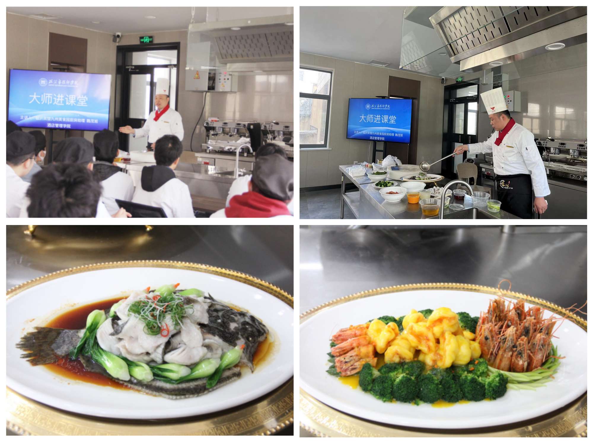 此次課程由臨沂賓館九州美食園廚房部助理魏茂旭主講,授課內(nèi)容為豉油開片多寶魚和金湯蘆筍對(duì)蝦。魏茂旭從色香味形器五個(gè)方面,針對(duì)刀工處理、原料腌制、烹飪技巧、裝盤等環(huán)節(jié)向同學(xué)們進(jìn)行了詳細(xì)的講解和制作。魏茂旭強(qiáng)調(diào),在菜品制作過程中,一定要注意操作衛(wèi)生,做到隨手清潔,養(yǎng)成良好的衛(wèi)生習(xí)慣,進(jìn)而形成規(guī)范的職業(yè)素養(yǎng)。課堂上,學(xué)生們仔細(xì)聽、認(rèn)真看,學(xué)到了很多書本上沒有的烹調(diào)知識(shí)。成品展示時(shí),老師同學(xué)們均表示兩道菜品色澤鮮亮,味道醇香,給出了高度評(píng)價(jià)。