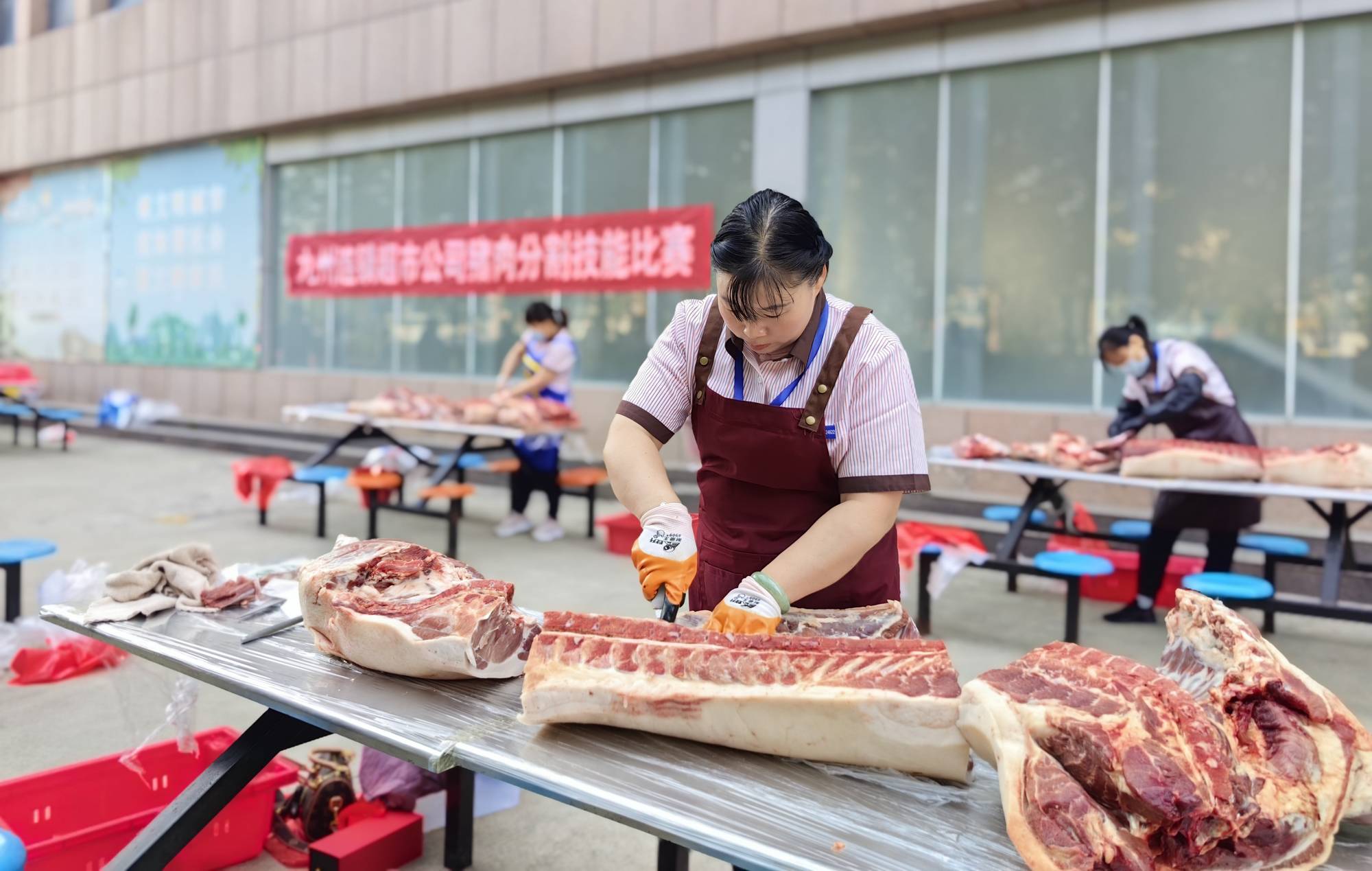 5月16日上午,超市公司在配送中心舉辦豬肉分割技能比賽,超市公司各門店共計34名員工參加。比賽現(xiàn)場,選手根據(jù)比賽要求在盡可能短的時間內(nèi)完成對白條豬的剔骨、分割,考驗員工刀工操作的熟練程度和對商品重量的精準把握。經(jīng)過綜合比拼,購物中心十里坊店沈繡芳獲得第一名,商城店徐坤獲得第二名,購物中心河東店劉玉霞獲得第三名。