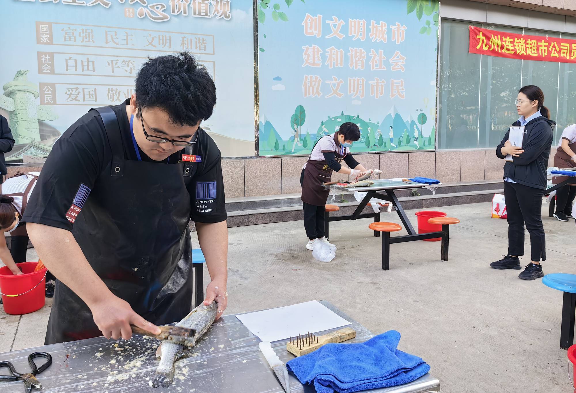 5月17日上午,超市公司在配送中心舉辦了魚宰殺技能比賽,超市公司各門店共計31名員工參加。比賽過程中,選手根據(jù)比賽要求對分配的淡水活魚和冰鮮海魚進行宰殺和清理,要求操作流程規(guī)范、臺面衛(wèi)生整潔、商品賣相符合要求,考驗了選手靈活敏捷的處理能力和操作的規(guī)范性。經(jīng)過綜合評比,王平莊店李懷梅獲得第一名,月亮灣店劉曉飛獲得第二名,紅旗路店顏丙衛(wèi)獲得第三名。