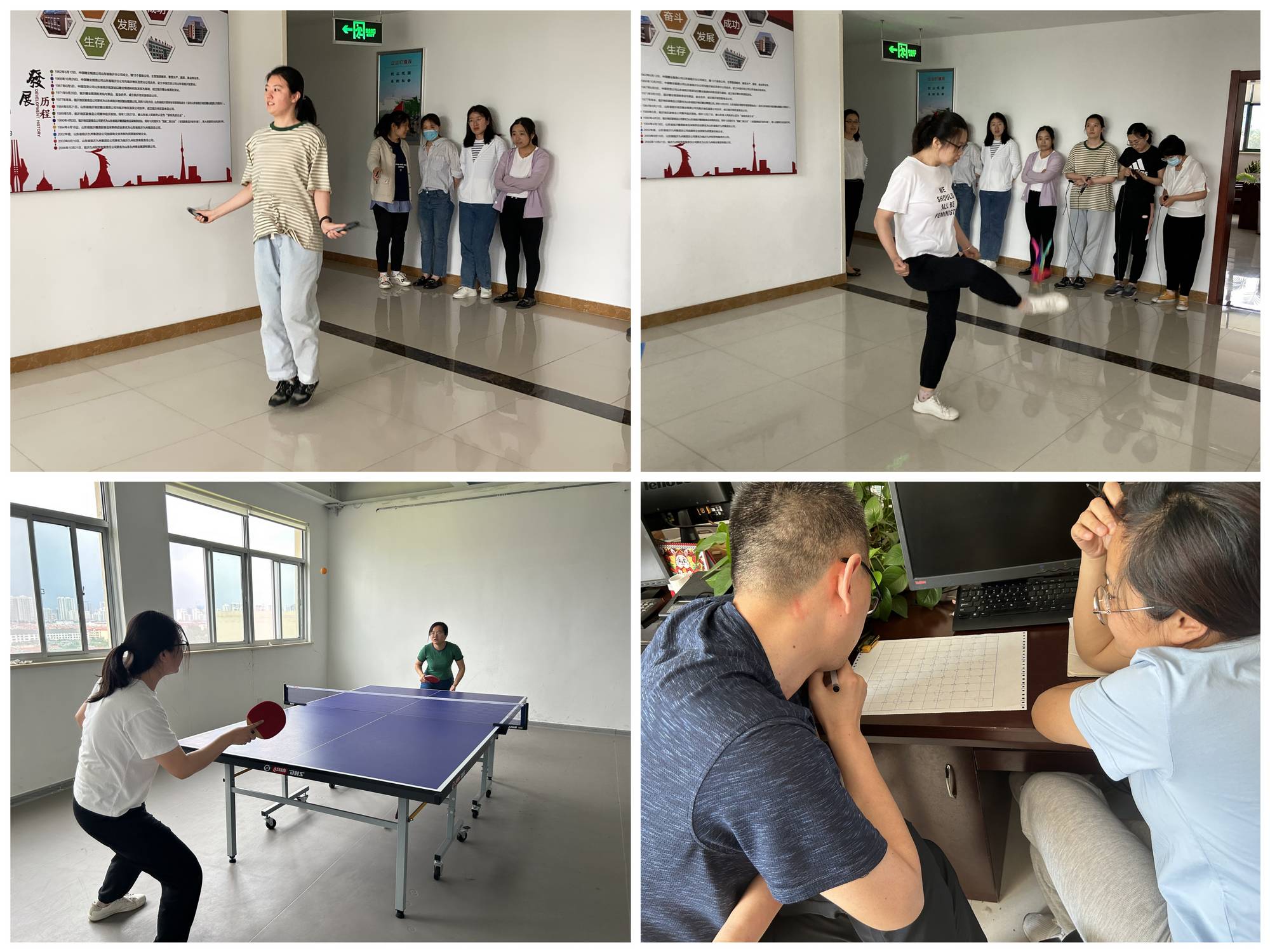 本屆趣味運動會設有跳繩、踢毽子、趕球跑、五子棋、乒乓球、你比劃我來猜、拋繡球、雙腿夾球接力、趣味套圈等比賽項目,既有挑戰(zhàn)性、競爭性,又保持了趣味性。比賽現場妙趣橫生、異彩紛呈,參賽選手配合默契、齊心協(xié)力,全身心投入到比賽項目中,盡情享受趣味運動帶來的快樂。