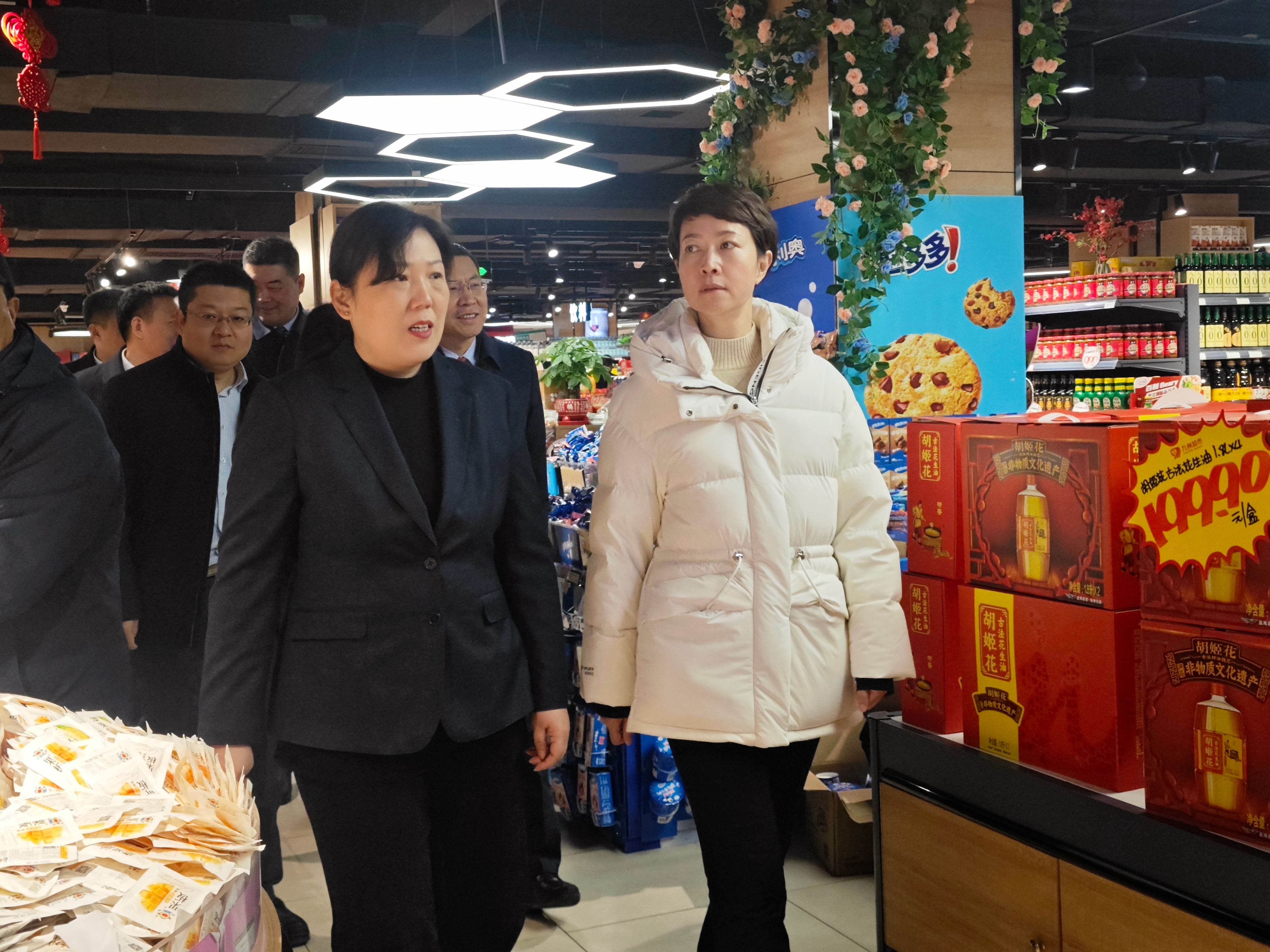 河?xùn)|區(qū)委副書記、區(qū)政府區(qū)長、黨組書記田婷婷一行到九州購物中心河?xùn)|店調(diào)研春節(jié)市場保供工作