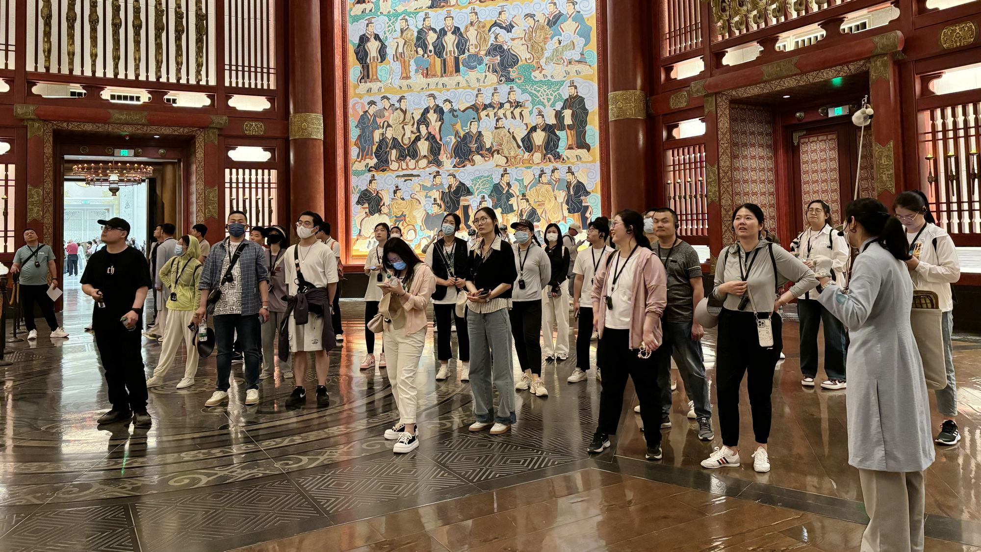 尼山腳下、圣水湖畔,團(tuán)員青年們禮拜先師、瞻仰圣像,近距離感受萬(wàn)世師表的儒雅之風(fēng)。在講解員的引領(lǐng)下,大家走進(jìn)孔子大學(xué)堂,先后參觀了七十二賢廊、“仁義禮智信”五廳、先賢廊、禮樂(lè)堂等,感受千年時(shí)光沉淀下的儒家文化,學(xué)習(xí)孔子的治學(xué)宏道,切身體驗(yàn)古圣先賢的智慧。