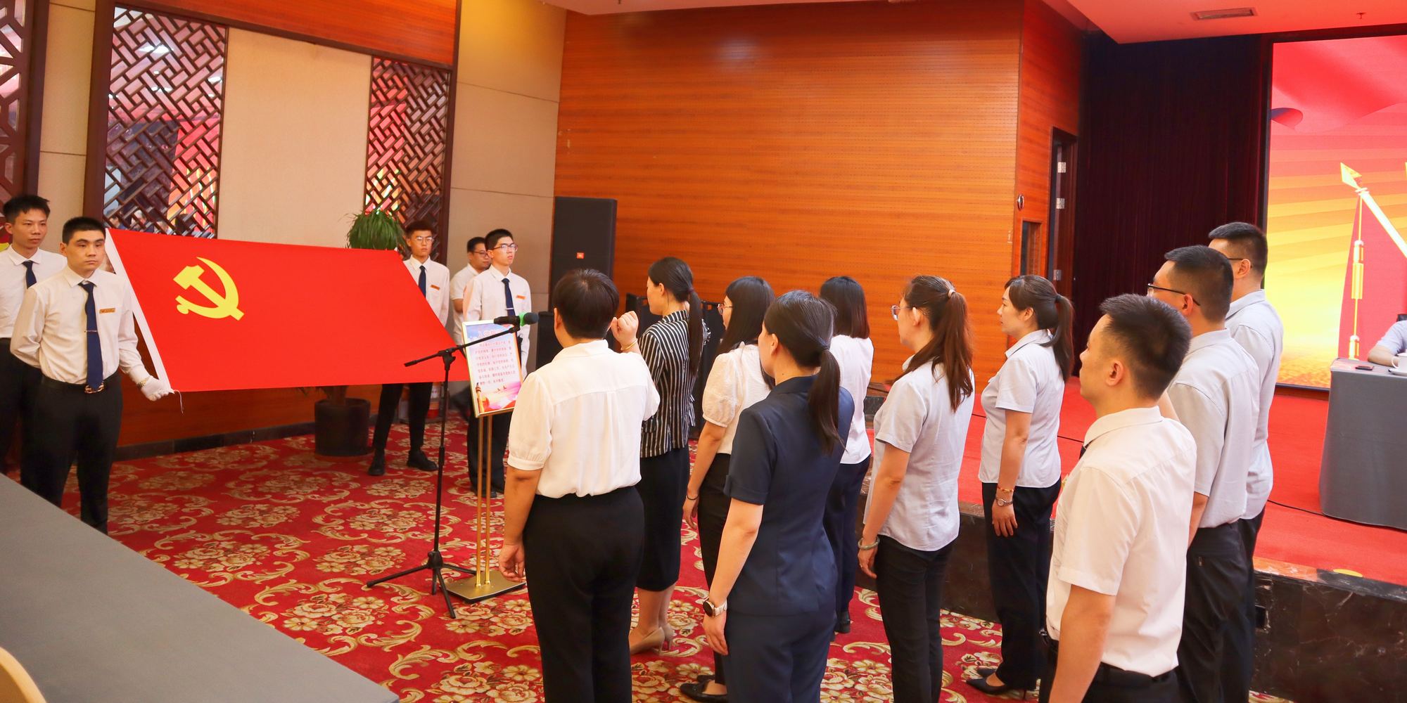 會(huì)議在雄壯激昂的國歌聲中拉開帷幕。會(huì)上,舉行了新發(fā)展黨員入黨宣誓儀式。集團(tuán)黨委副書記、紀(jì)委書記王姣帶領(lǐng)集團(tuán)新發(fā)展的9名黨員面向黨旗莊嚴(yán)宣誓。