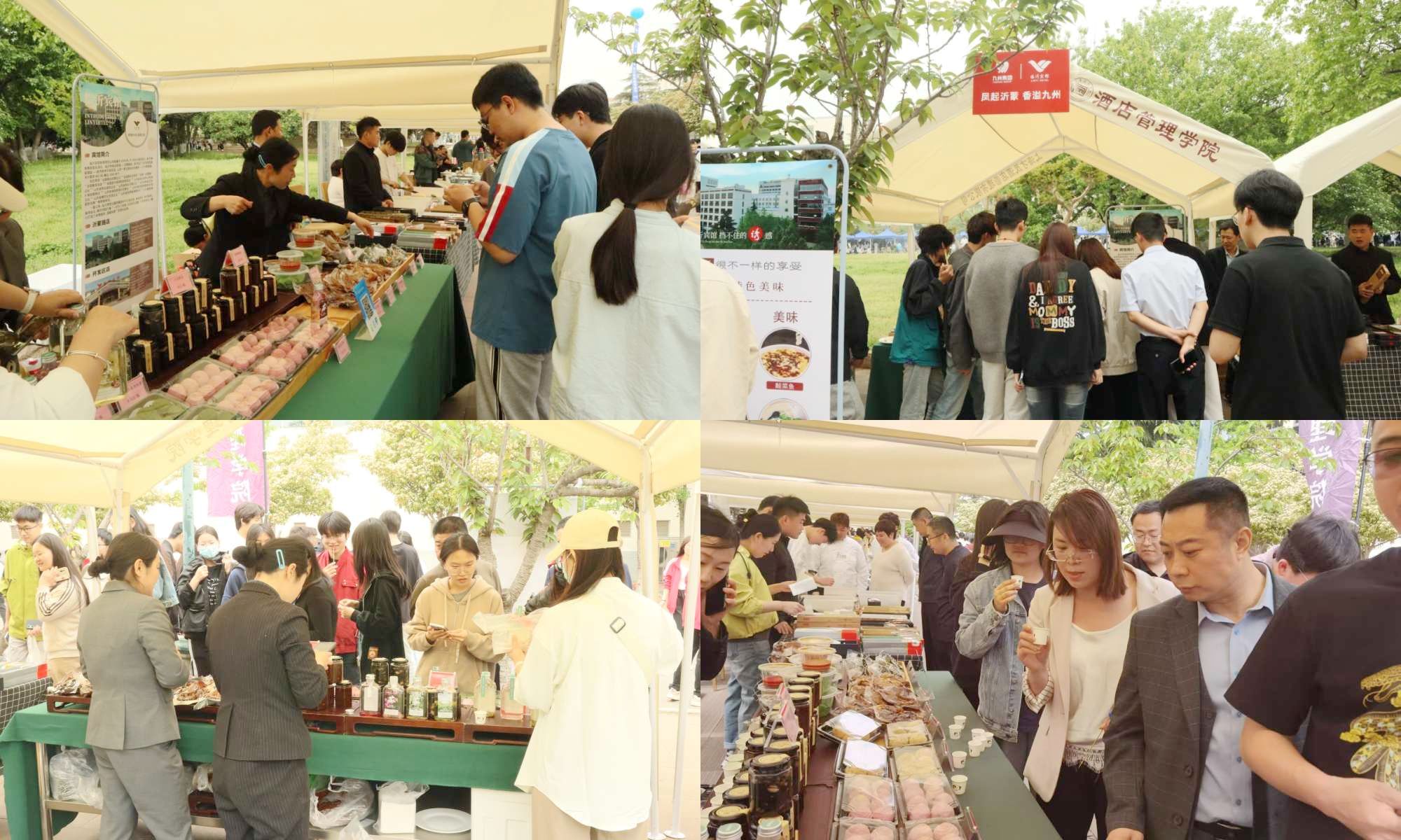 活動(dòng)前,臨沂賓館工作人員精心策劃選品,力求為師生帶來高品質(zhì)的互動(dòng)體驗(yàn);顒(dòng)現(xiàn)場(chǎng),工作人員將精心制作的冷泡茶、青團(tuán)、麻薯、櫻花紅豆酥等特色美食整齊陳列,還在現(xiàn)場(chǎng)設(shè)置了燒雞、豬蹄、老上海肉粽等熟食區(qū),豐富的品類、地道的風(fēng)味吸引了眾多師生品鑒購(gòu)買,攤位前人頭攢動(dòng),氣氛熱烈。