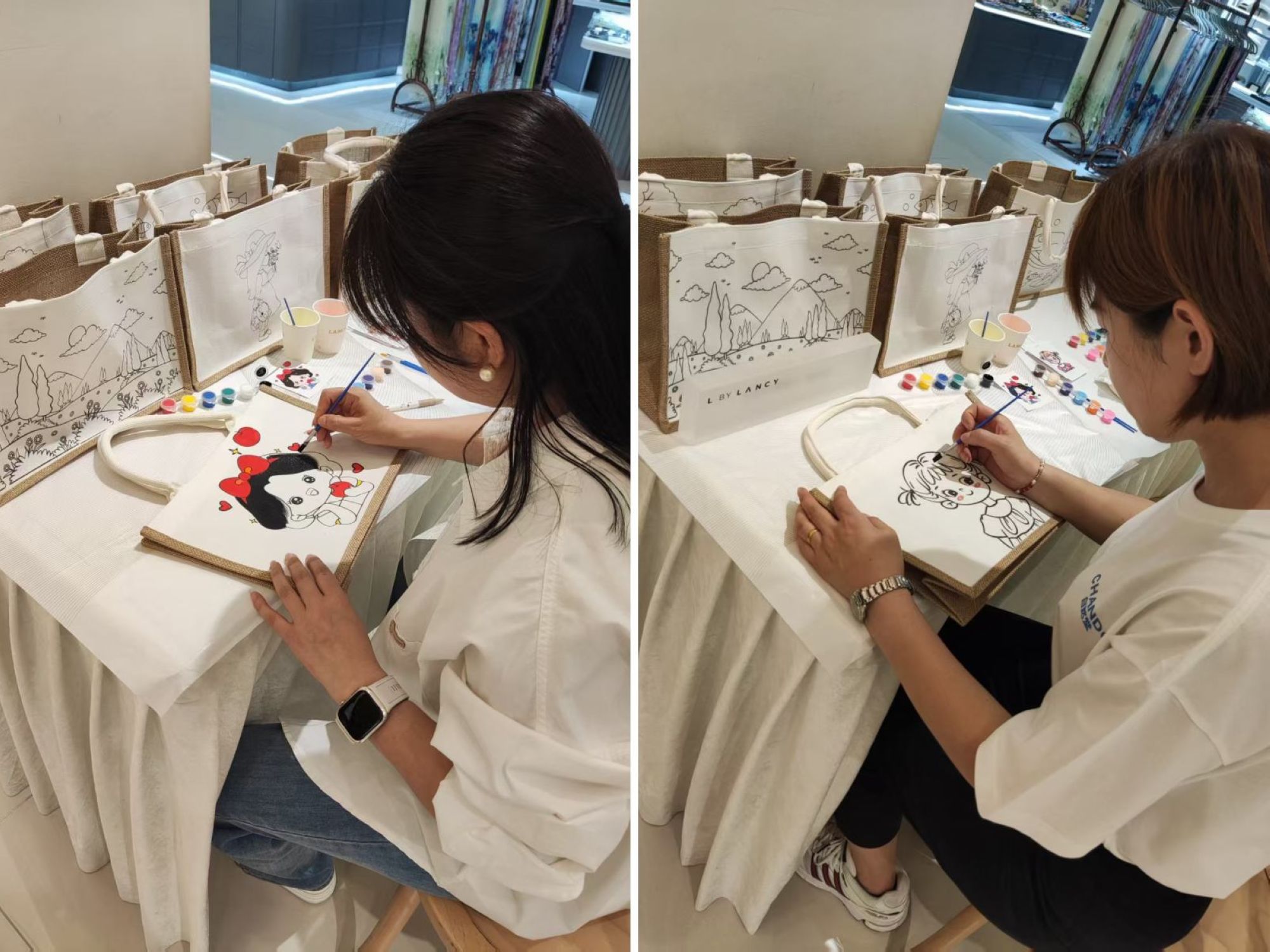 活動現(xiàn)場,朗姿店長徐慶芝從色彩搭配、圖案設(shè)計及繪畫技巧等方面對顧客進(jìn)行全程指導(dǎo),極大地激發(fā)了大家的創(chuàng)作熱情和靈感,很快一件件獨具風(fēng)格的時尚手包便呈現(xiàn)出來。