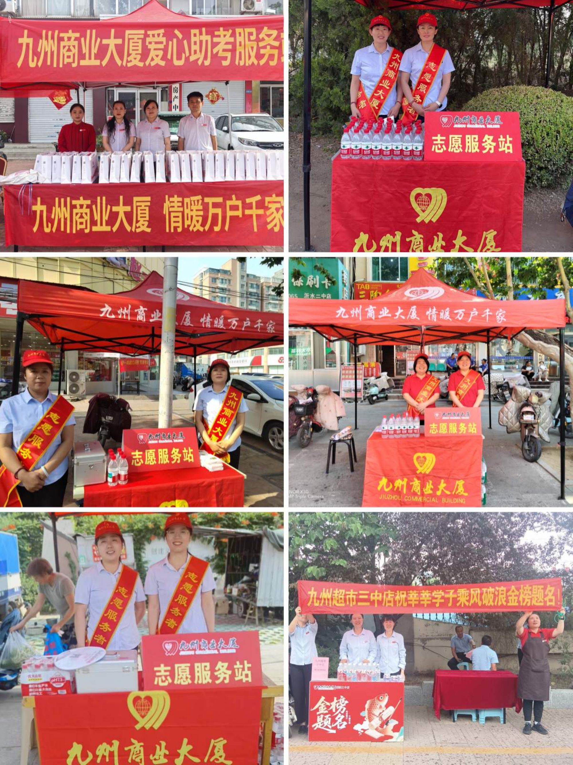 九州家電臨沭店組織黨員志愿者們?cè)谂R沭縣各主要考點(diǎn)周邊設(shè)立了“愛心助考服務(wù)站”。準(zhǔn)備了2B 鉛筆、中性筆、橡皮等考試必備文具以及充足的礦泉水、藿香正氣水、風(fēng)油精等防暑降溫用品,在炎炎夏日為大家送去清涼與關(guān)懷。