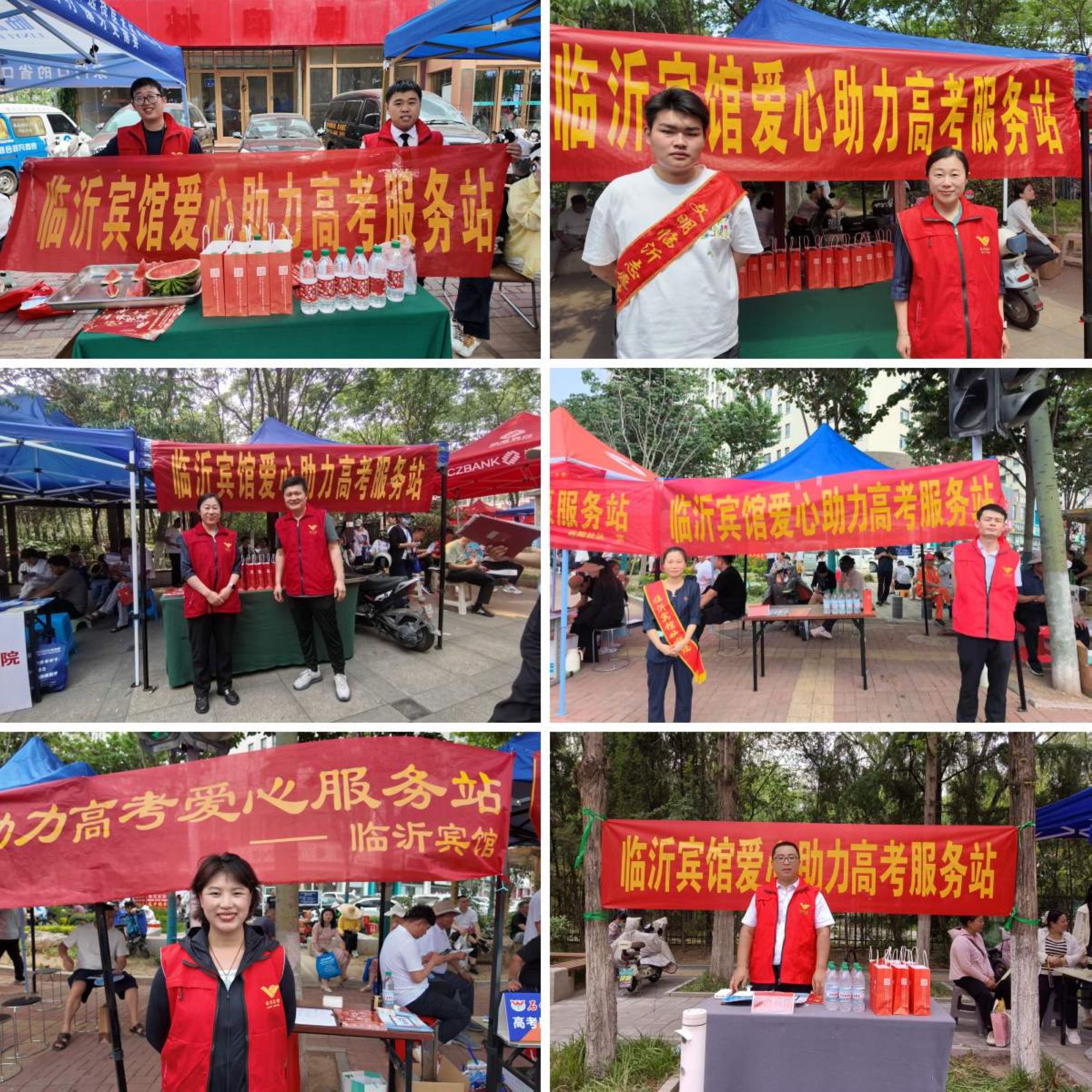 沂蒙路店在臨沂一中、臨沂二中及臨沂七中等考點(diǎn)設(shè)置了6個(gè)愛心助力高考服務(wù)站,免費(fèi)為考生及家長(zhǎng)提供礦泉水、西瓜、手工小點(diǎn)心等降溫解渴的物品。