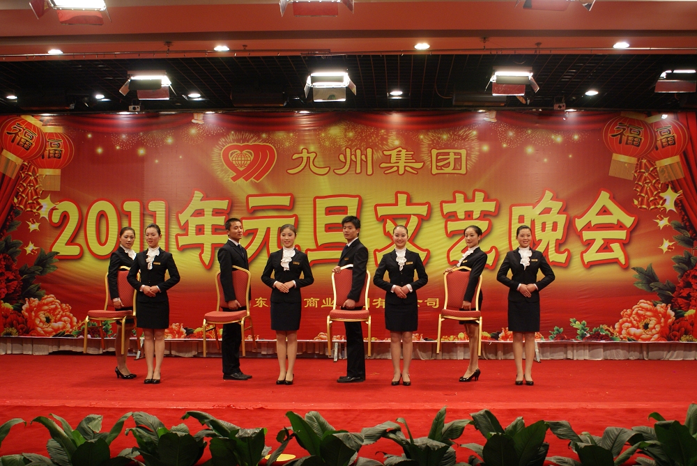 集團(tuán)舉行2011年元旦文藝晚會 歡聲笑語辭舊歲,鶯歌燕舞迎新春,山東九州商業(yè)集團(tuán)2011年元旦文藝晚會于12月28日晚在臨沂賓館舉行。集團(tuán)領(lǐng)導(dǎo)楊沂城、王佐文、楊永東等與五百多名員工一起觀看了演出。 晚會節(jié)目形式多樣,歌舞、小品、三句半、詩歌朗誦、武術(shù)表演等節(jié)目從不同的角度熱情謳歌了九州人在2010年所取得的輝煌成績。晚會在歌伴舞《和諧中國 和諧九州》中,拉開了序幕;群口相聲《九州運(yùn)動會》形式新穎,寓教于樂,在輕松愉快中向觀眾展示了九州人團(tuán)結(jié)奮進(jìn)、勇于創(chuàng)新的精神風(fēng)貌;民族舞《荷塘月色》表演清新脫俗,意境優(yōu)美,讓臺下的觀眾如癡如醉;詩朗誦《我心中的九州》和《我愛九州》,表達(dá)出了廣大九州員工立足本職,無私奉獻(xiàn)的決心,道出了廣大員工對企業(yè)的無限熱愛;《旅游服務(wù)禮儀展示》節(jié)目,向廣大觀眾展示了賓館員工良好的儀容儀表和嫻熟的崗位服務(wù)技能;小品《鳳落九州》語言詼諧幽默,表演生動活動,博得臺下觀眾陣陣掌聲;歌伴舞《笑口常開》節(jié)奏歡快,充滿青春的氣息,展現(xiàn)了九州人朝氣蓬勃、積極向上的良好精神風(fēng)貌。最后,晚會在合唱《九州歡迎你》中落下帷幕。 整臺晚會氣氛熱烈、節(jié)目精彩、笑語不斷,始終洋溢著熱情、和諧、歡樂的氣氛。廣大員工相聚一起共同分享著2010年集團(tuán)所取得的輝煌成績,也期待著更加美好的2011年。
