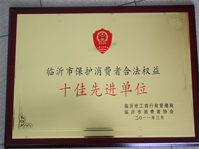 2011年臨沂市“3 .15”電視晚會于3月12日舉行,當(dāng)晚揭曉了全市保護消費者合法權(quán)益十佳先進單位,集團公司榜上有名。 榮譽的獲得是對集團長期以來誠信經(jīng)營,優(yōu)質(zhì)服務(wù)的充分肯定。 集團在經(jīng)營中視商品質(zhì)量為生命,把顧客當(dāng)親人,力求把最優(yōu)質(zhì)的服務(wù)、最優(yōu)良的商品奉獻給廣大消費者,打造了顧客滿意的誠信九州,受到社會各界的一種好評。去年五大單位全部被授予“山東省第八屆消費者滿意單位”榮譽稱號。