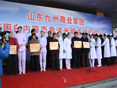 3月29日,山東九州商業(yè)集團(tuán)為貧困白內(nèi)障患者送光明活動(dòng)在市人民醫(yī)院眼科門診樓前舉行啟動(dòng)儀式。該活動(dòng)由集團(tuán)出資60萬為我市600名貧困白內(nèi)障患者提供免費(fèi)手術(shù)。臨沂市慈善總會(huì)副會(huì)長(zhǎng)楊本渠、集團(tuán)董事長(zhǎng)楊沂城及市有關(guān)單位領(lǐng)導(dǎo)出席啟動(dòng)儀式。 據(jù)了解,本次活動(dòng)由市總工會(huì)、市慈善總會(huì)、共青團(tuán)臨沂市委、市婦聯(lián)、市民政局、市衛(wèi)生局和山東沂蒙晚報(bào)傳媒有限公司主辦,山東九州商業(yè)集團(tuán)、臨沂市人民醫(yī)院承辦。計(jì)劃投入資金60萬元,為全市600名貧困白內(nèi)障患者提供免費(fèi)手術(shù)。定點(diǎn)醫(yī)院設(shè)在臨沂市人民醫(yī)院。凡申請(qǐng)接受免費(fèi)白內(nèi)障手術(shù)的貧困患者,可到所在地民政部門領(lǐng)取《山東九州商業(yè)集團(tuán)貧困白內(nèi)障患者報(bào)名表》,并在表上加蓋村(居委)、鄉(xiāng)鎮(zhèn)(辦事處)公章后,交縣(區(qū))民政局報(bào)市民政局慈善辦,統(tǒng)一安排手術(shù)。 [題圖:集團(tuán)董事長(zhǎng)楊沂城在啟動(dòng)儀式上講話]