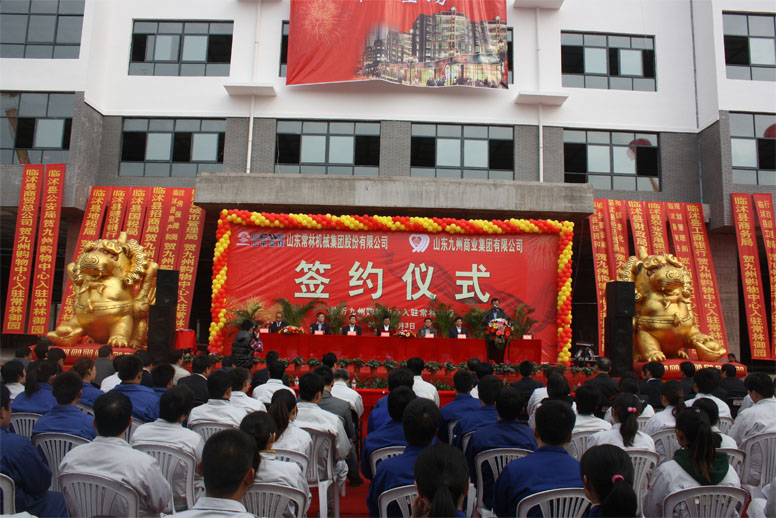 11月3日,臨沭九州購(gòu)物中心在臨沭縣舉行簽約儀式。臨沭縣副縣長(zhǎng)王新端及縣直有關(guān)部門(mén)負(fù)責(zé)人出席簽約儀式,山東常林機(jī)械集團(tuán)股份有限公司董事長(zhǎng)張義華、總裁鐘默等與集團(tuán)領(lǐng)導(dǎo)楊沂城、王佐文、楊永東共同參加簽約儀式。