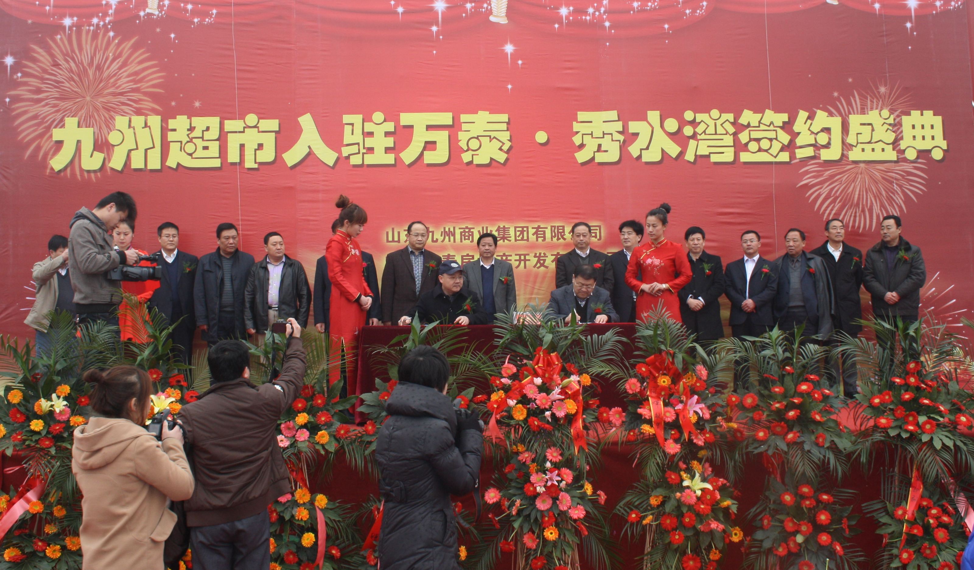 3月17日,九州超市入駐萬泰•秀水灣簽約儀式在北城新區(qū)舉行。集團領(lǐng)導(dǎo)出席簽約儀式。
