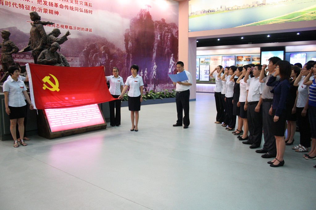 弘揚沂蒙精神,接受革命傳統(tǒng)教育;繼承先烈遺志,做一名合格的共產(chǎn)黨員。在中國共產(chǎn)黨建黨91周年之際,集團黨委于7月5日上午,組織預(yù)備黨員、入黨積極分子120余人赴華東革命烈士陵園,舉行新黨員宣誓儀式,并參觀沂蒙精神展。 雨中的華東革命烈士陵園,松柏蒼翠逼人,革命烈士紀念塔愈發(fā)莊重肅穆。一磚一瓦,一草一木,都在無聲訴說著革命先烈的英雄事跡。在沂蒙精神展館,這個記錄革命先輩豐功偉績,傳承沂蒙精神的地方,集團黨委副書記、組織委員楊永東帶領(lǐng)30余名預(yù)備黨員,面對黨旗莊嚴宣誓,加入中國共產(chǎn)黨。隨后,全體預(yù)備黨員和入黨積極分子一起參觀沂蒙精神展,珍貴的歷史照片,革命先烈的遺物,復(fù)原的戰(zhàn)爭場景、講解員的細致講解……讓我們重溫了沂蒙光榮和輝煌的過去,再現(xiàn)了沂蒙人民為新中國的成立和建設(shè)自己的美好家園作出的巨大奉獻和不懈努力。 這次活動,給大家上了一堂特殊的“黨課”,大家紛紛表示要進一步弘揚偉大的沂蒙精神,繼承和發(fā)揚革命先烈遺志和光榮革命傳統(tǒng),堅定信念,以實際行動做一名合格的共產(chǎn)黨員。