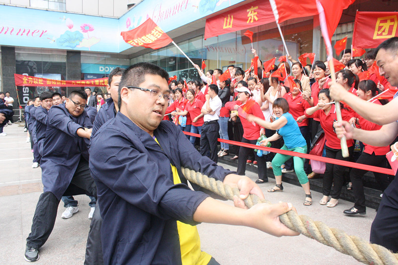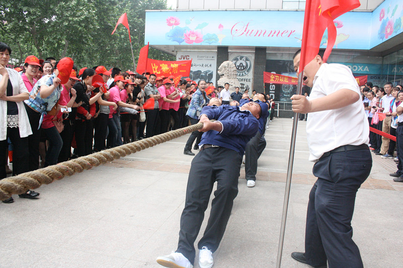 5月23日上午,集團運動會拔河比賽項目在九州商業(yè)大廈門前廣場舉行,超市公司、九州大廈、臨沂賓館、九州宜家佳、九州汽貿等五支代表隊參加比賽。經(jīng)過激烈角逐,超市公司成功衛(wèi)冕,臨沂賓館、九州宜家佳分獲二、三名。比賽現(xiàn)場,廣大員工展現(xiàn)出了積極向上、團結拼搏的良好精神風貌。 拔河比賽項目的舉行,拉開了集團運動會的序幕。運動會上各單位都精心準備了豐富多彩的比賽項目,豐富員工生活,鍛煉員工體魄,促進交流溝通。