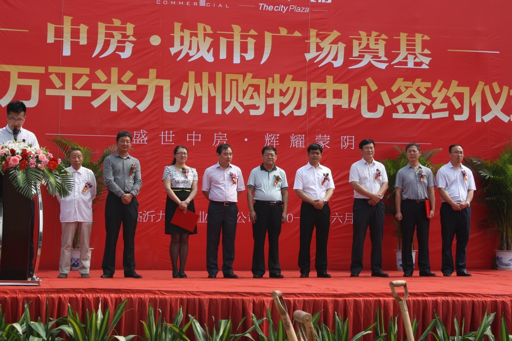 6月9日,中房•城市廣場(chǎng)奠基暨九州購(gòu)物中心入駐簽約儀式在蒙陰縣舉行。集團(tuán)領(lǐng)導(dǎo)楊沂城、楊永東出席簽約儀式。